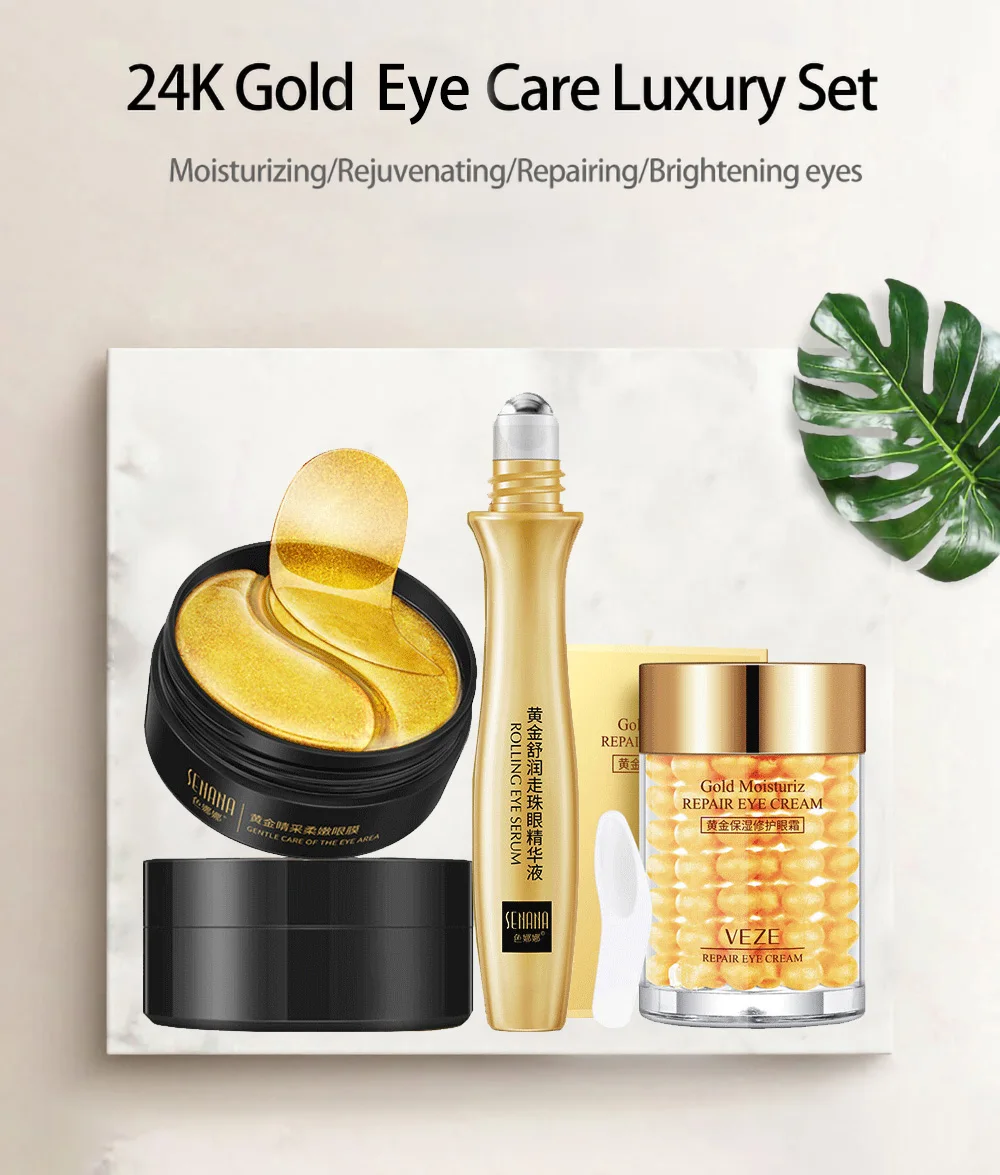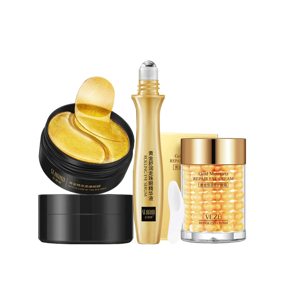 Увлажняющая маска для глаз против темных кругов 24K Gold антивозрастной крем для глаз роликовый массаж Сыворотка для глаз активированный набор для ухода за кожей глаз