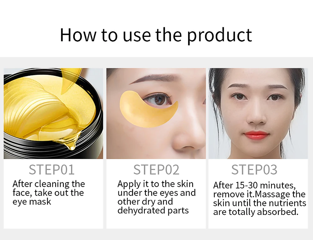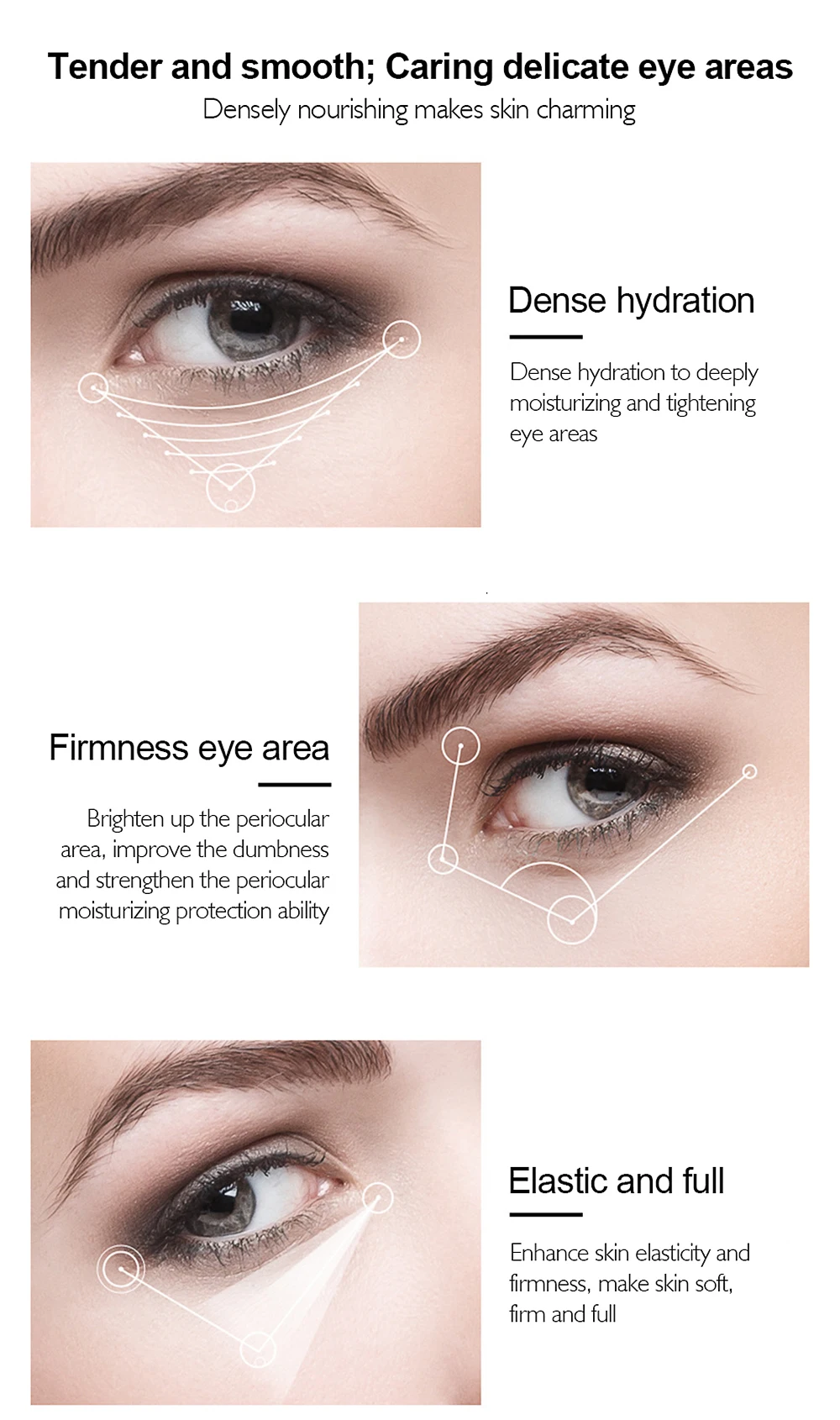 Обогащенный различными экстрактами, он обеспечивает интенсивное увлажнение ваших глаз и уменьшает признаки старения. Удалите темные круги, мешок глаз, анти возраст, против морщин. Ваша кожа может наслаждаться глубоким питанием и интенсивным уходом. Это делает ваши глаза более прочными, гладкими и регенерированными. Маска для глаз станет тоньше и тоньше благодаря отличному поглощению высокой концентрации эссенций кожей глаз.
