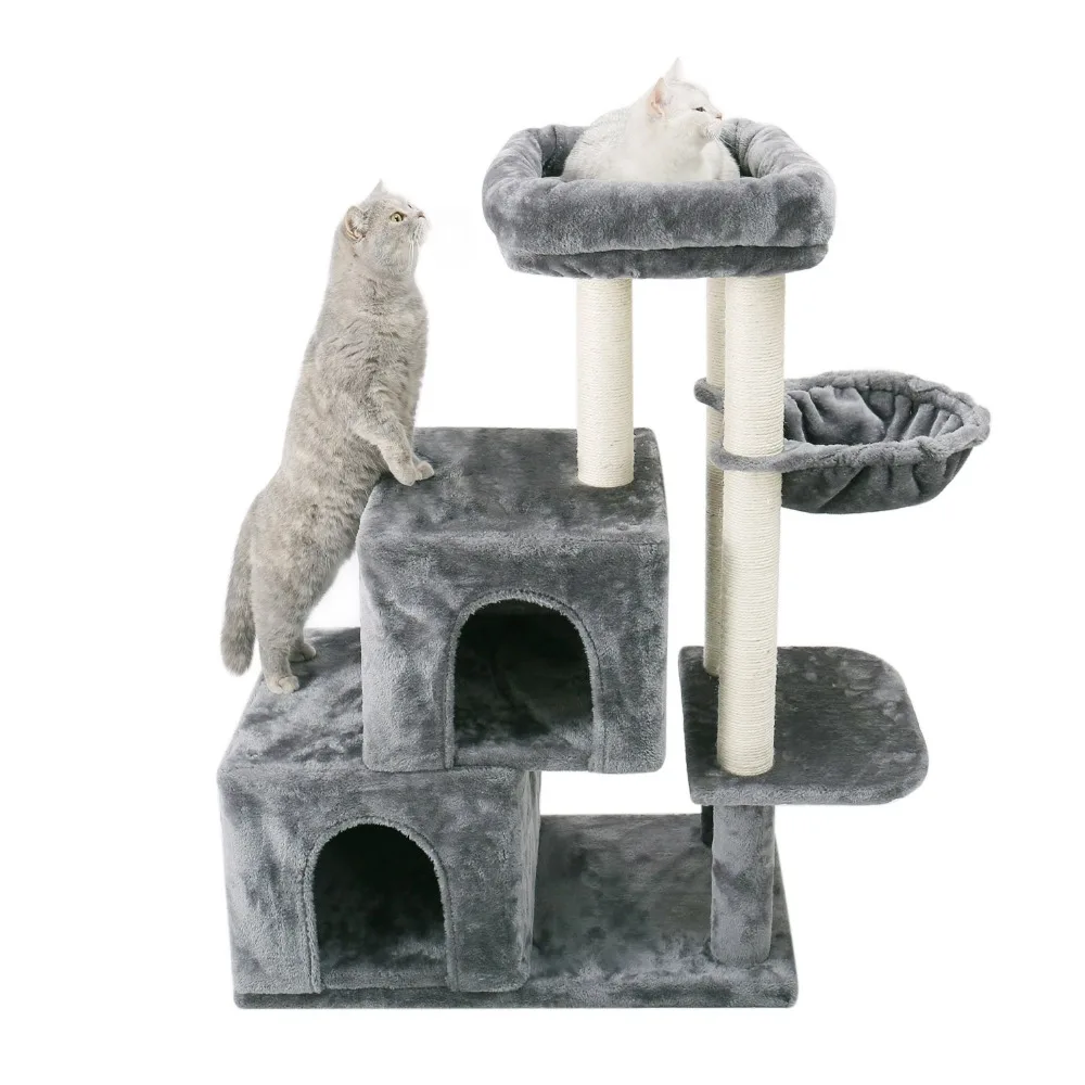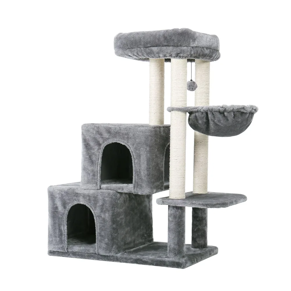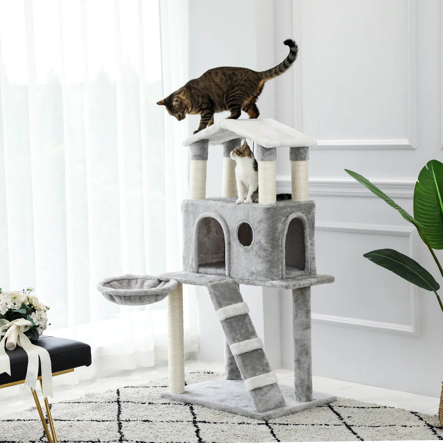Домик для кошачьего дерева Cando, центр деятельности для кошек с двумя кондонами, мягкий окунь, полностью закрытые когтеточные сизальные столбы для кошек, игрушки, башня