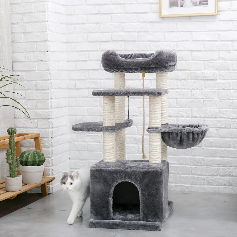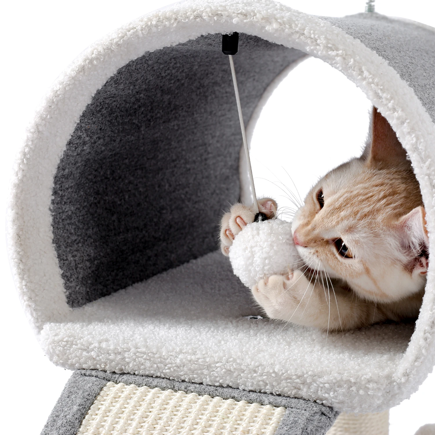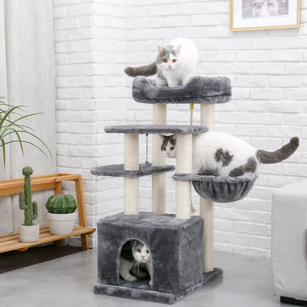 Домик для кошачьего дерева Cando, центр деятельности для кошек с двумя кондонами, мягкий окунь, полностью закрытые когтеточные сизальные столбы для кошек, игрушки, башня