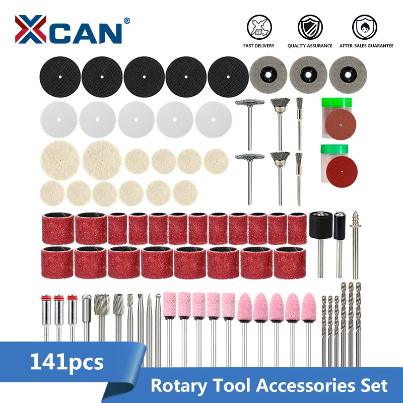 Электрический шлифовальный инструмент XCAN, 141 шт., полировочное колесо, алмазный режущий диск, лезвие пилы, песочные ленты, мини-сверло для вращающегося инструмента Dremel