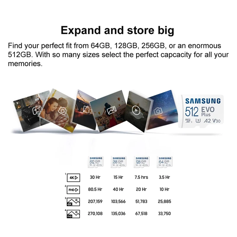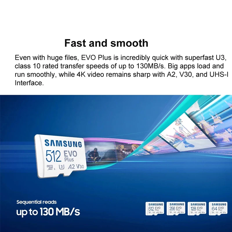 Новая карта памяти Samsung EVO Plus micro SD, 256 ГБ, microSDXC UHS-I U3, скорость передачи 130