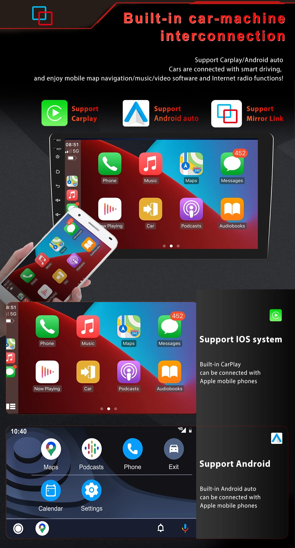 ● 4G оперативная память, 64G память, большое пространство памяти• 8-ядерный высокой четкости 10,1 дюймов IPS с двумя камерами, емкостный экран, Бег быстро радио плеер, 1024*600 с высоким разрешением● Встроенная gps-навигация: пользователи могут приобрести автономную навигацию непосредственно из Play Store. Подключитесь к Wi-Fi, используйте Google Maps идеально, вы можете пойти куда угодно и никогда не потеряться снова● Встроенный WIFI и 4G: Подключите WIFI или вставьте sim-карту, Вы найдете новый мир, более мощную способность анти-помех, более стабильный беспроводной сигнал Wi-Fi и более высокую скорость передачи● Камера заднего вида: Поддержка камеры высокой четкости, вам нужно выбрать камеру, автомобиль автоматически переключается при подключении заднего хода (опционально)● Управление рулевым колесом: через него вы можете управлять функциями, которые вам нужны, через рулевое колесо, что более удобно● Встроенный A2DP/Hands Free/Телефонная книга Bluetooth: Bluetooth hands-free call, воспроизведение музыки по Bluetooth, автоматическая загрузка телефонной книги по сравнению с предыдущей версией, скорость быстрее, а мощность канала больше● Видеорегистратор: вы можете выбрать регистратор, есть воспроизведение на машине, вы можете сохранить доказательства● Поддержка файлового менеджера: поддержка загрузки, установки и удаления тысяч приложений Android● Без каких-либо кабелей вы можете наслаждаться музыкой в вашем телефоне, и он поддерживает подключение USB.● FM/AM/RDS радио: онлайн-музыка может быть передана на автомобильную стереосистему через FM, чтобы наслаждаться оригинальным автомобильным стерео, 30 предустановленных радиостанций, высококлассный радиочип, мощное шумоподавление и защита от помех, поддержка функции FM/AM RDS, чистый поиск каналов и низкий уровень шума● Функция разделения экрана: две страницы могут отображаться одновременно, например, навигация и музыкальный дисплей одновременно● Настройка времени: вы можете использовать сеть или GPS для автоматического включения даты и времени, или вы можете настроить его вручную.● DSP: автомобиля dsp настройка программного обеспечения, используя DSP технологии настройки, вы можете настроить частоту, AE, 36-полосным эквалайзером, Доставка в течение 10-полосным эквалайзером, И выбор типа звука в приложении, чтобы компенсировать отсутствие оригинальных автомобильных динамиков и получить лучшее качество звука без потерь. Наслаждайтесь музыкой в автомобиле-это первый выбор для аудиофилов, которые ищут высокое качество звука.● Беспроводная Carplay: Беспроводная система Carplay в автомобиле может тесно интегрировать устройство iOS и iOS с системой приборной панели. Используйте rs, которые используют Carplay, можно подключить к автомобильной системе через кабель передачи данных для достижения навигации с голосовым управлением, совершать звонки, отправлять и получать сообщения и слушать музыку.● Проводная автоматическая система Android: Проводная автомобильная система Android может тесно интегрировать телефон и плеер Android и осуществлять навигацию, совершать звонки, отправлять и получать информацию, прослушивание музыки и других операций через подключение кабеля передачи данных;● 4G подключение sim-карты подходит для большинства операторов, FDD B1/B2/B3/B5/B8, TDD: B38/B40/B41/B39● Мобильный телефон ссылка обновление двойной системы зеркальная ссылка: IOS/Android зеркальн