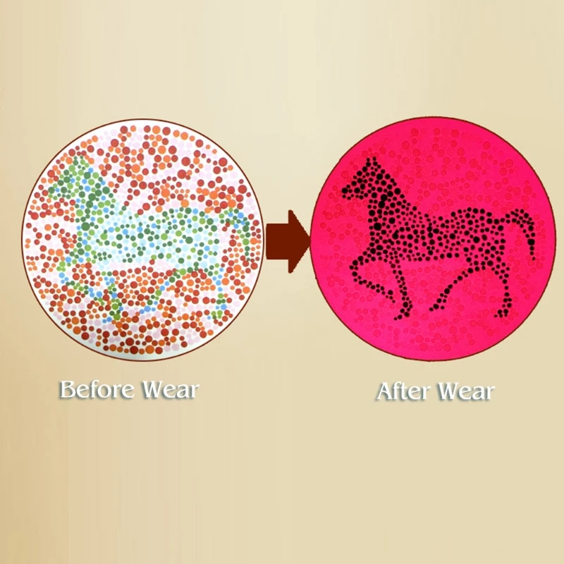 ● Подходит для красно-зеленой слабой группы, ПВХ красно-зеленые линзы, красно-зеленая коррекция слепоты (красный лучше)