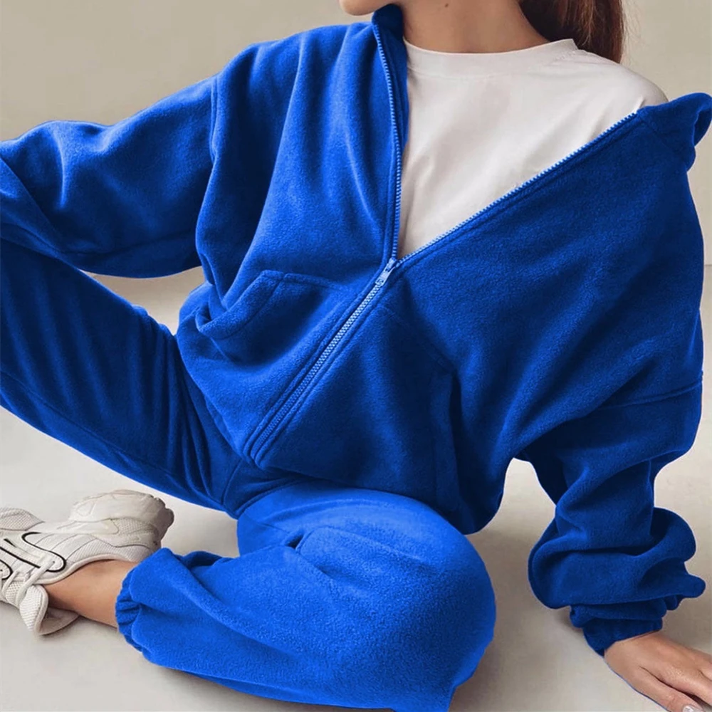 Повседневный Женский комплект из двух предметов с флисовой толстовк...
