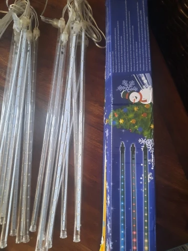 【Красивое и волшебное украшение, Солнечный дождь, капля света 】Освещение метеоритного дождя подходит для любых случаев. Метеоритный дождь светит синим украшением в маленьком дереве, выглядит как маленькие бомбы, идущие вниз с неба, очень богатый цвет и движение абсолютно привлекает внимание.
