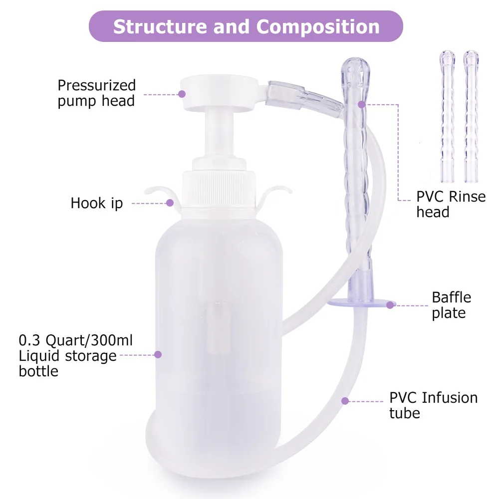 Удобные-Сопло представляет собой изгибную и дополнительную тонкую резину с 9 отверстиями для очистки на 360 градусов, что делает его более удобным для вставки анального или вагинального. Насос дает полный контроль за темпом поступления жидкости. Более аккуратная и комфортная, отличная гигиеническая стирка для женщин