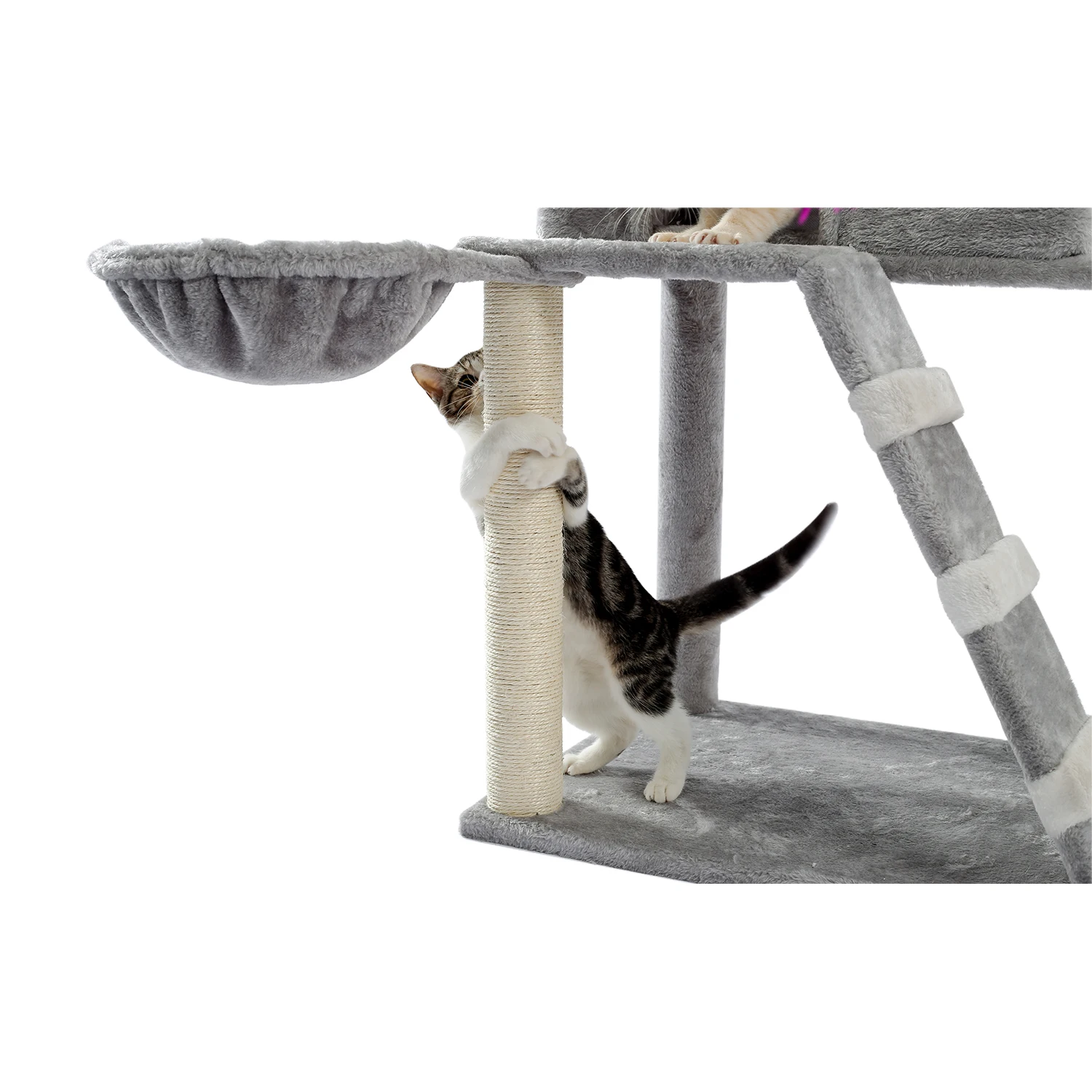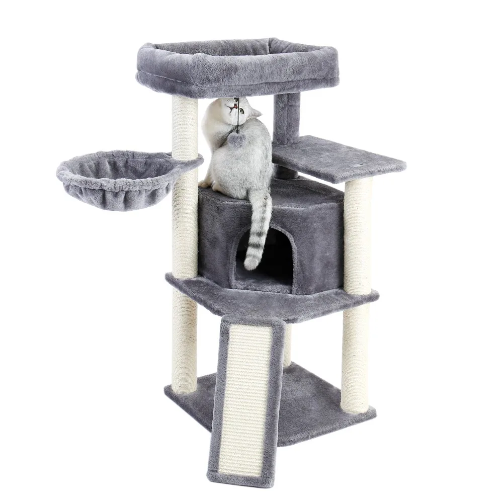 Кошки могут лежать на гамаке на верхнем уровне.