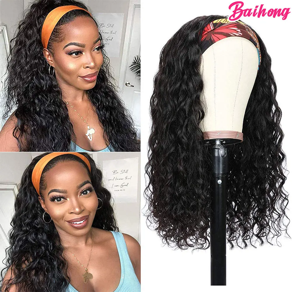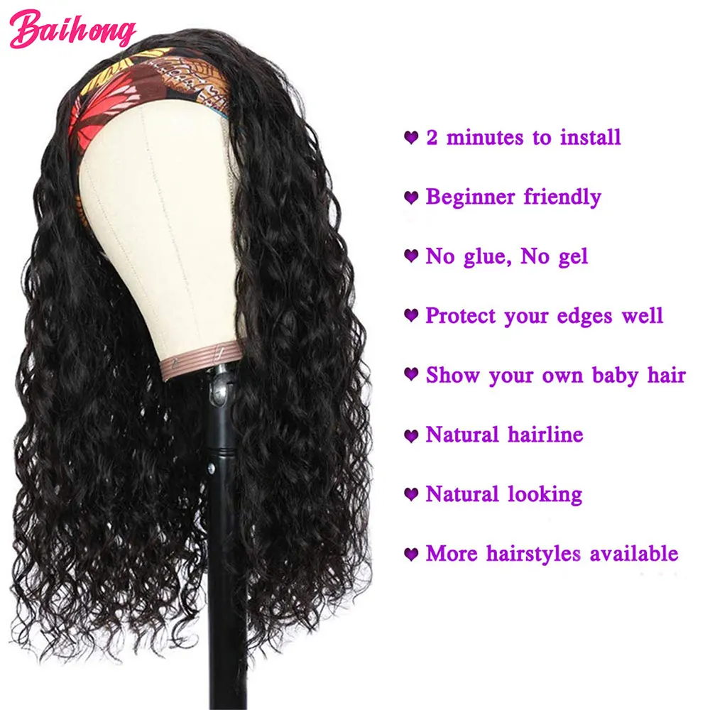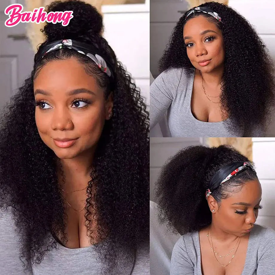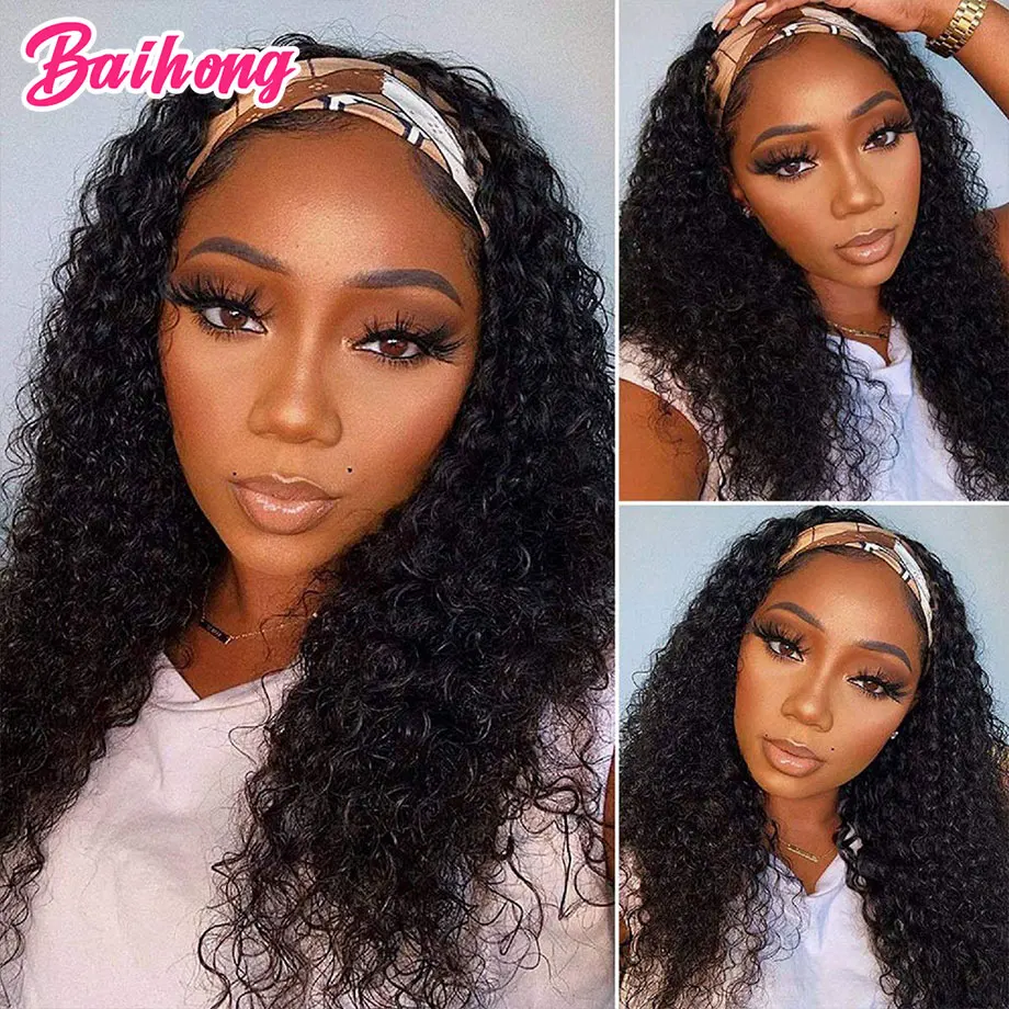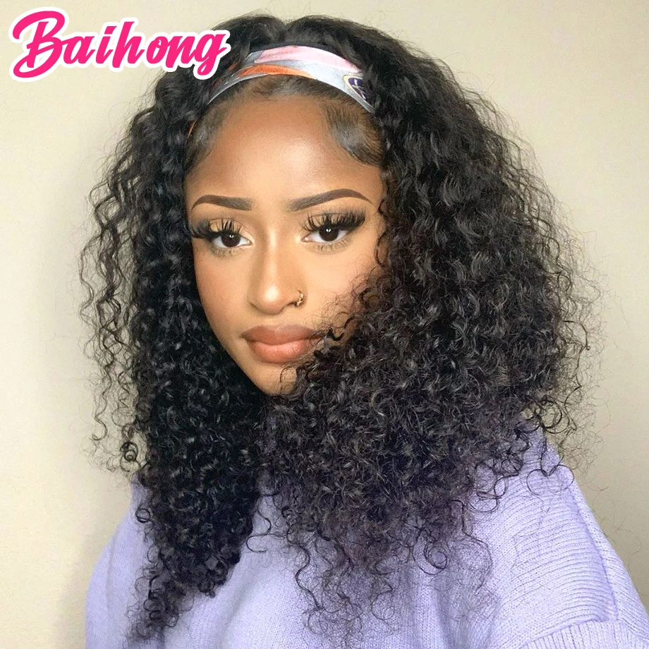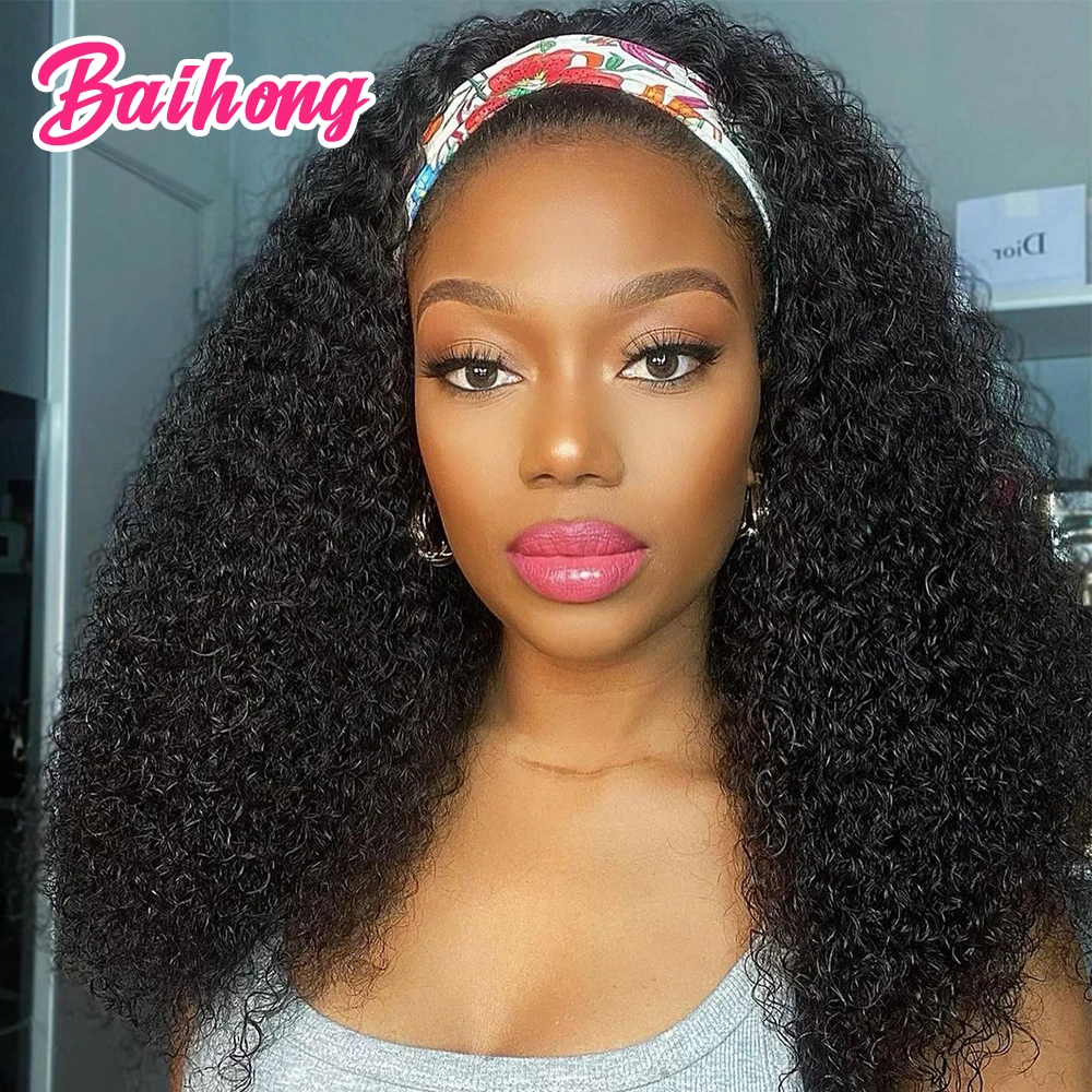 Парик с головной повязкой, человеческие волосы, кудрявые вьющиеся бразильские волосы Remy, 30 дюймов, бесклеевые, 180% плотность, полные машинные парики с повязкой на голову Baihong