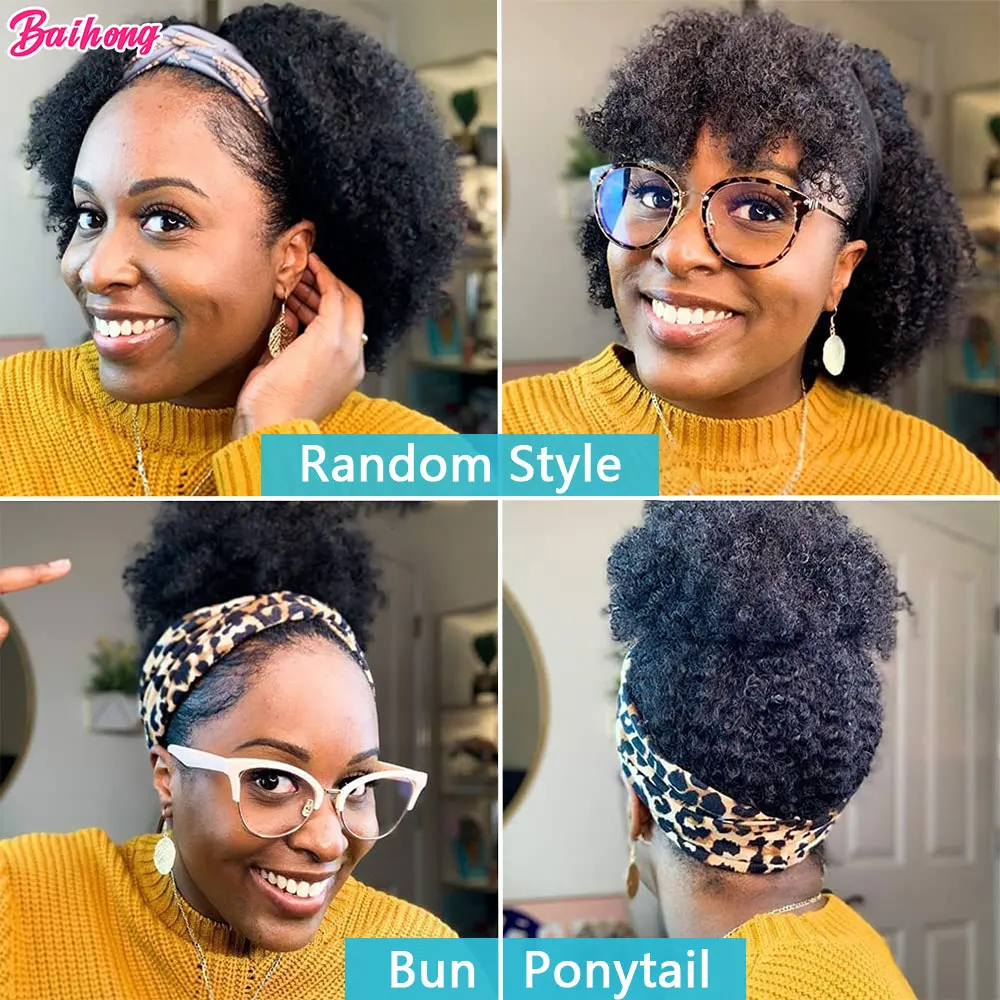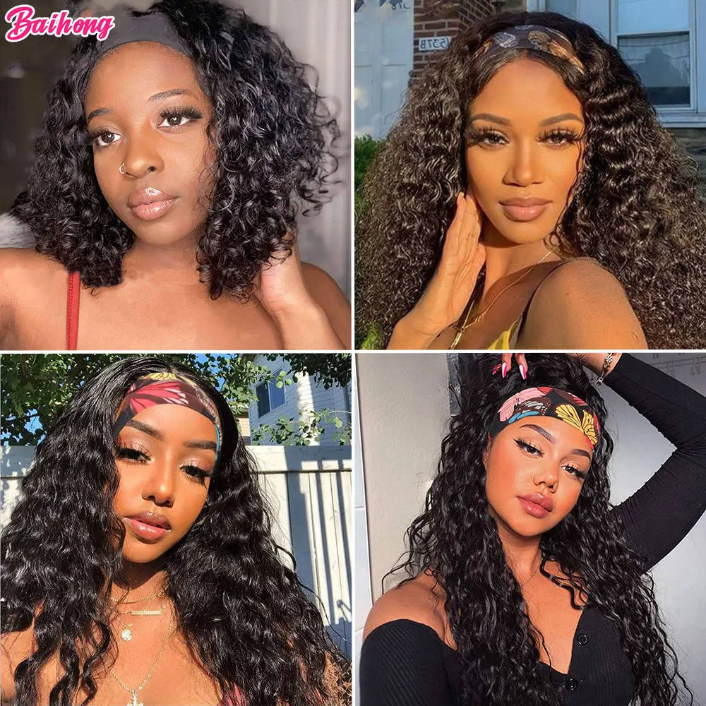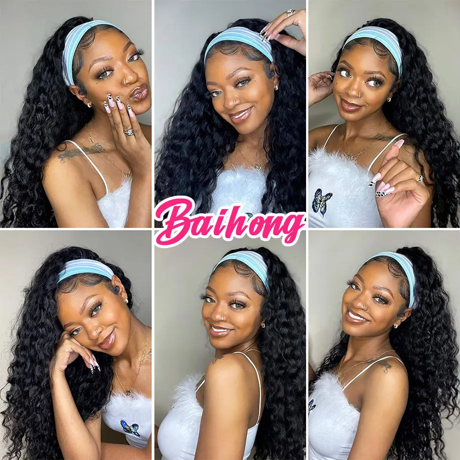 Wigs StyleKinky Curly& Afro Curly& Deep Wave& Water Wave Headband Human Hair Wig