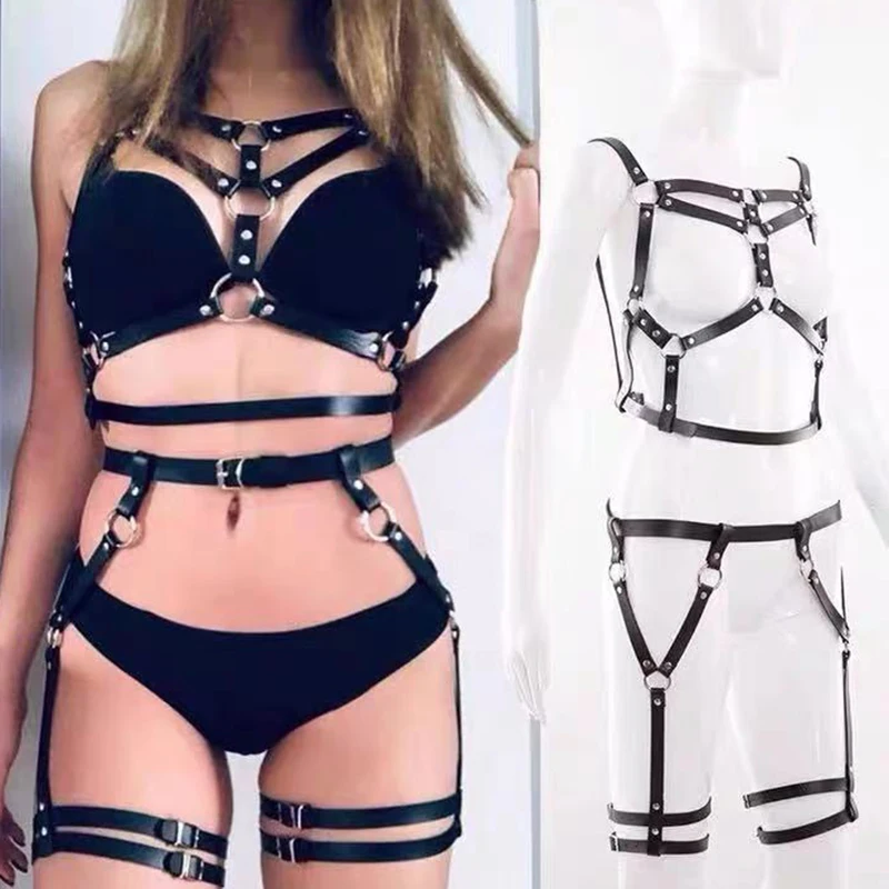 Женская кожаная портупея, эротический комплект бондажа, сексуальный...