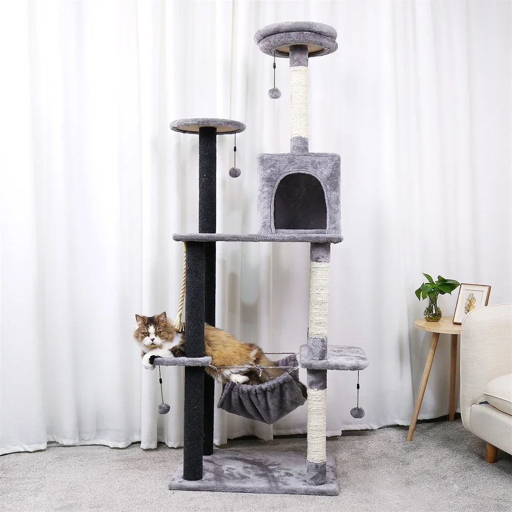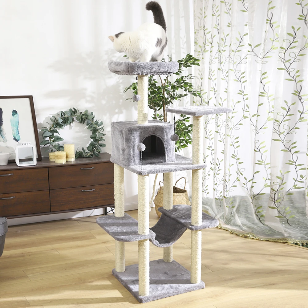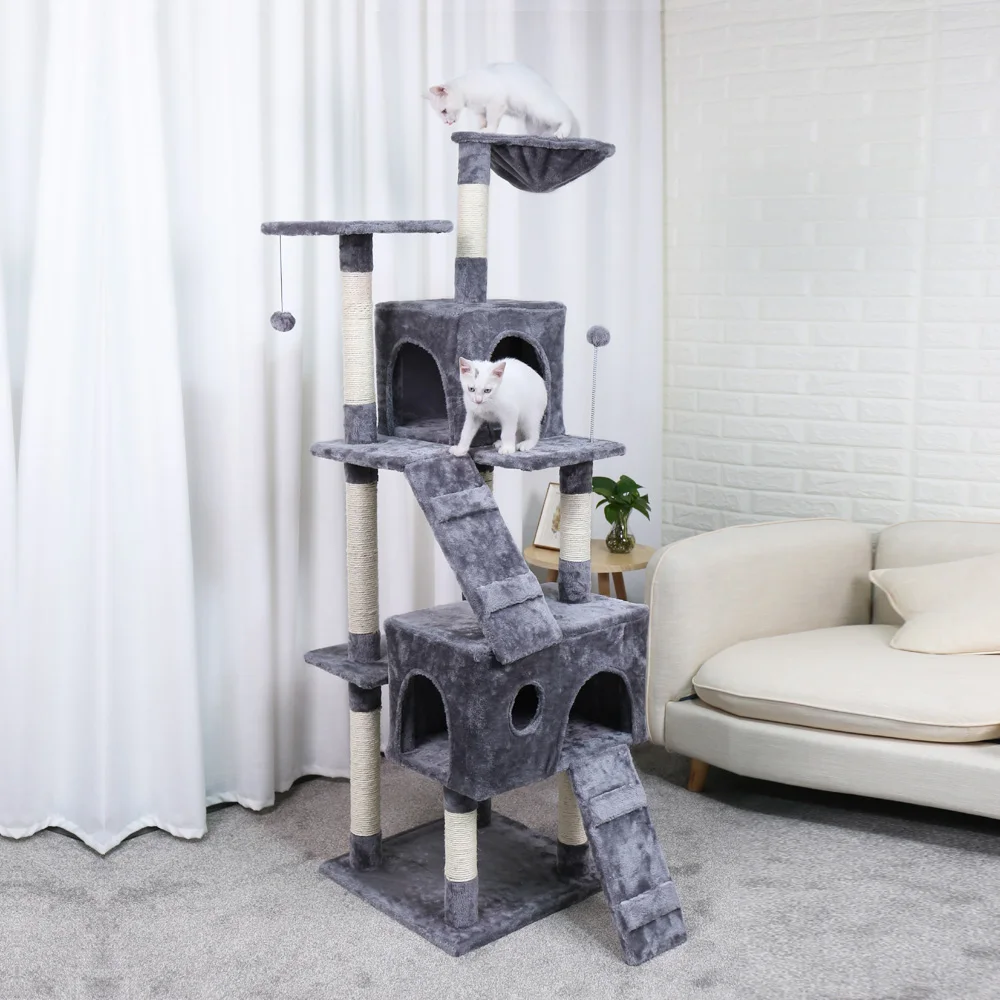 Домик для кошек H175 см с подвесным шариком, мебель для котят из массива дерева с царапинами, рама для скалолазания, Декорации для кошек, бытовая доставка