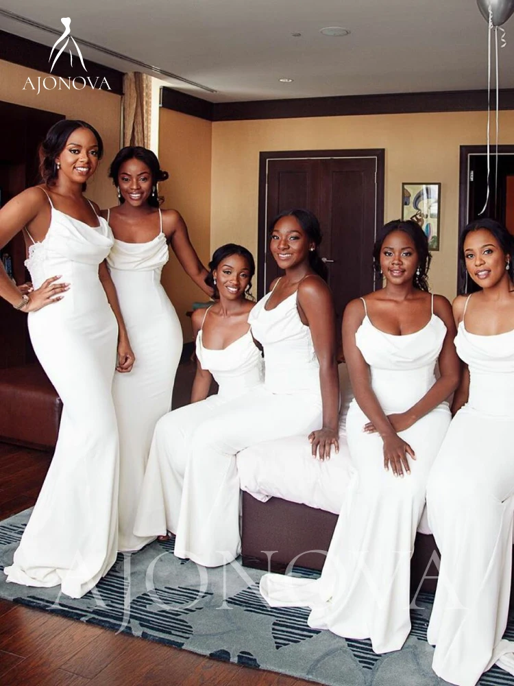 Женские платья подружки невесты на тонких бретельках 2021 Элегантное свадебное платье белое атласное платье подружки невесты