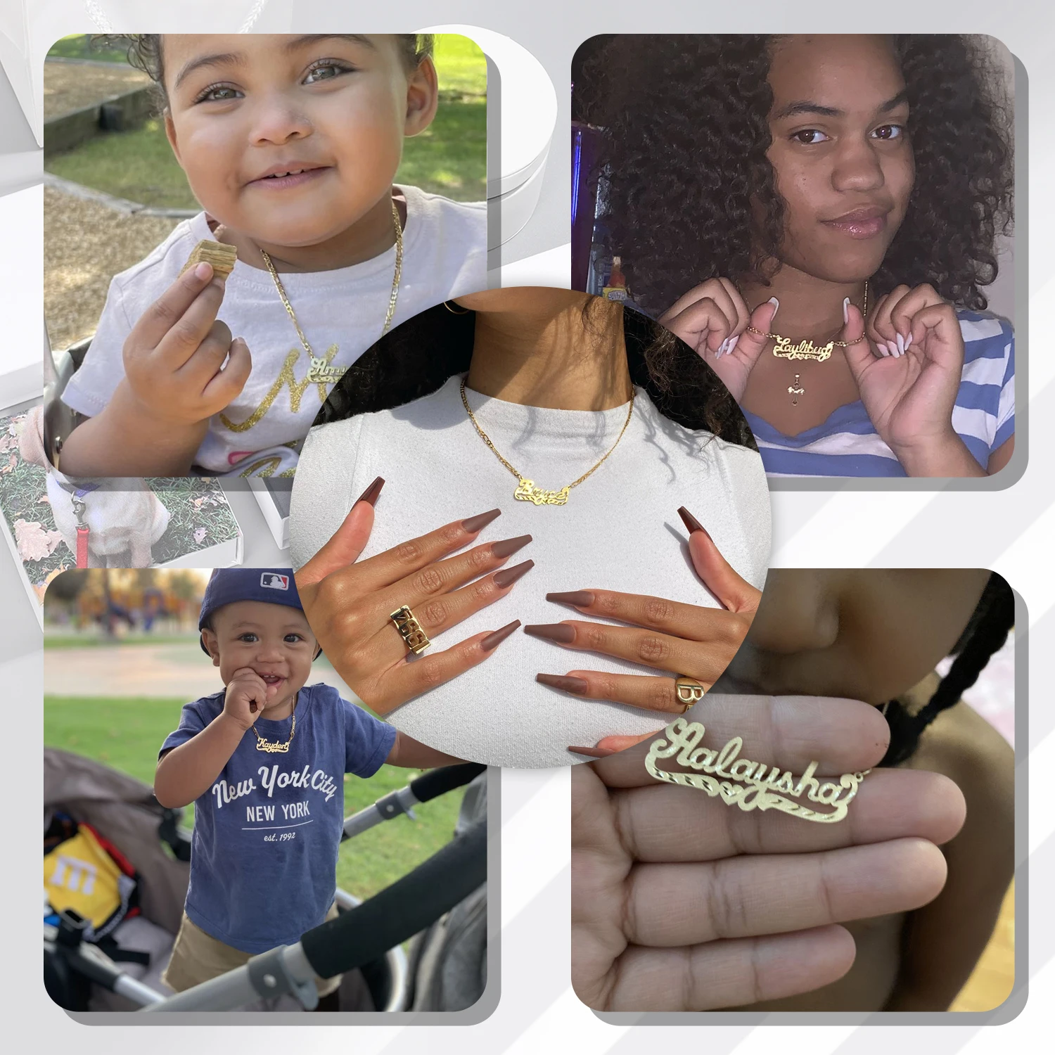 Индивидуальное ожерелье с именем и сердцем, двухцветное ожерелье, двойная пластина из 18-каратного золота, бриллиант, подарок для женщин и девушек