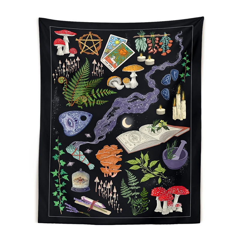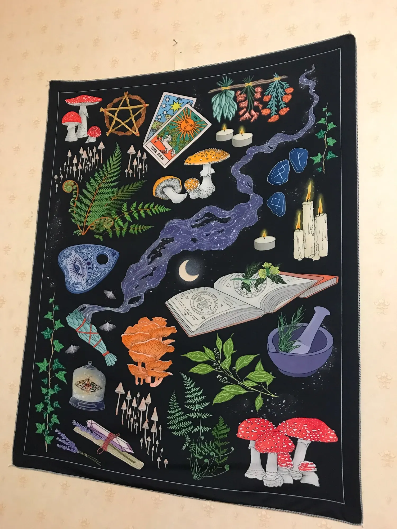 Таро грибы, гобелен, настенная подвеска, Луна, Звездный Ботанический рисунок, хиппи, богемный стиль, Декор для дома