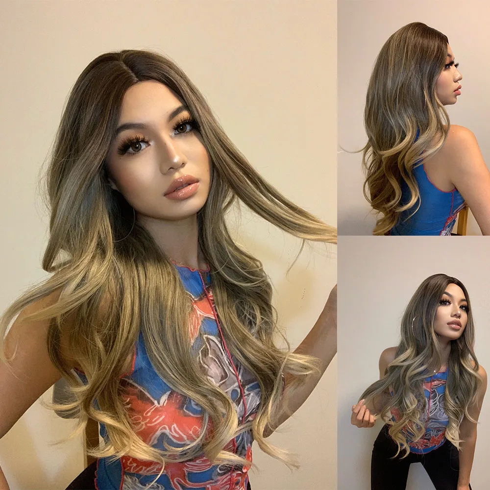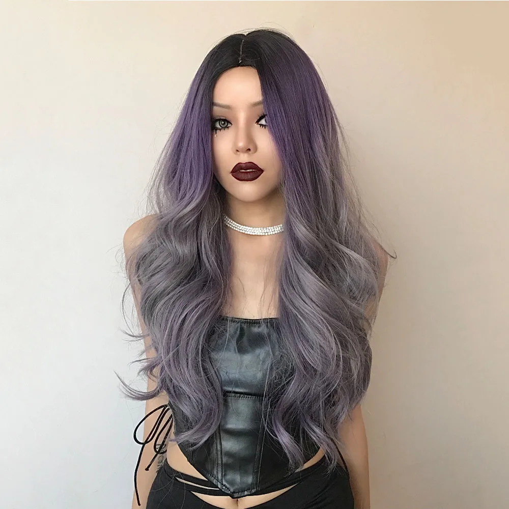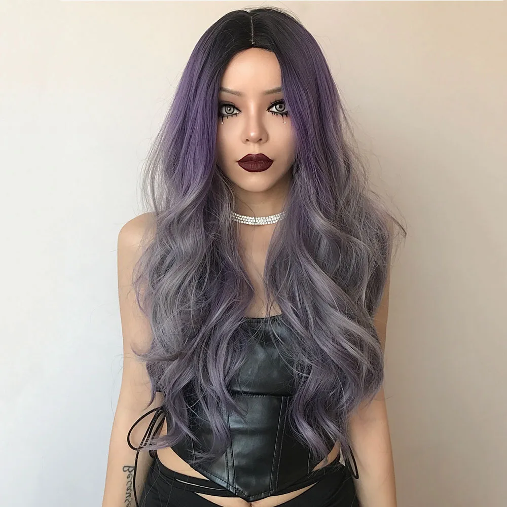 Женские Длинные Синтетические парики с эффектом омбре henmargu, термостойкие натуральные красочные парики для косплея Лолиты с волнистыми волосами