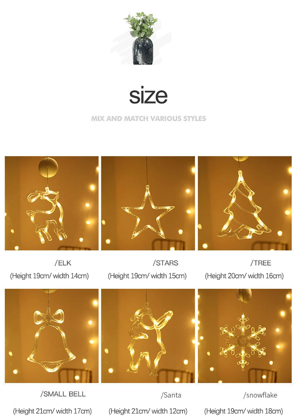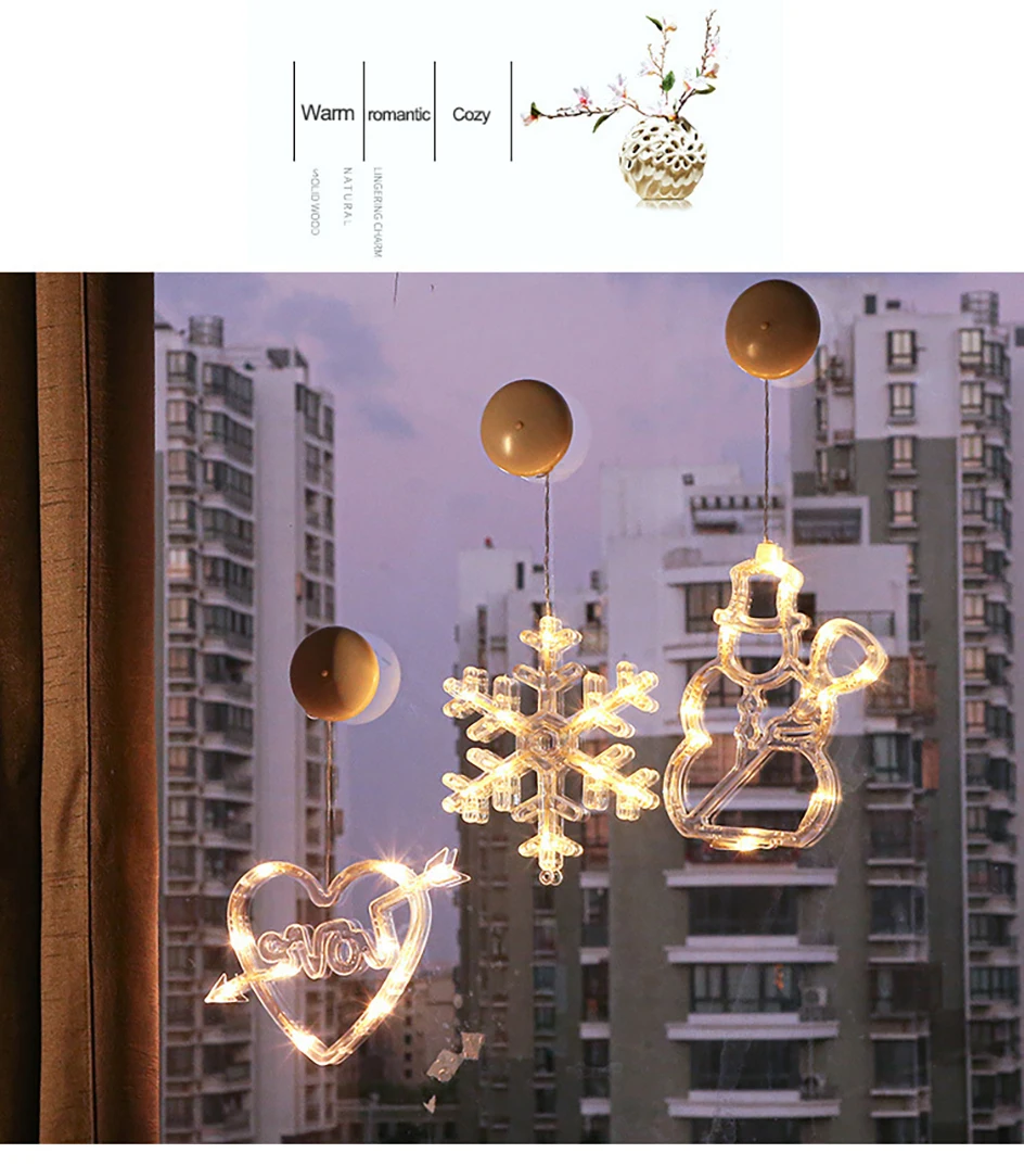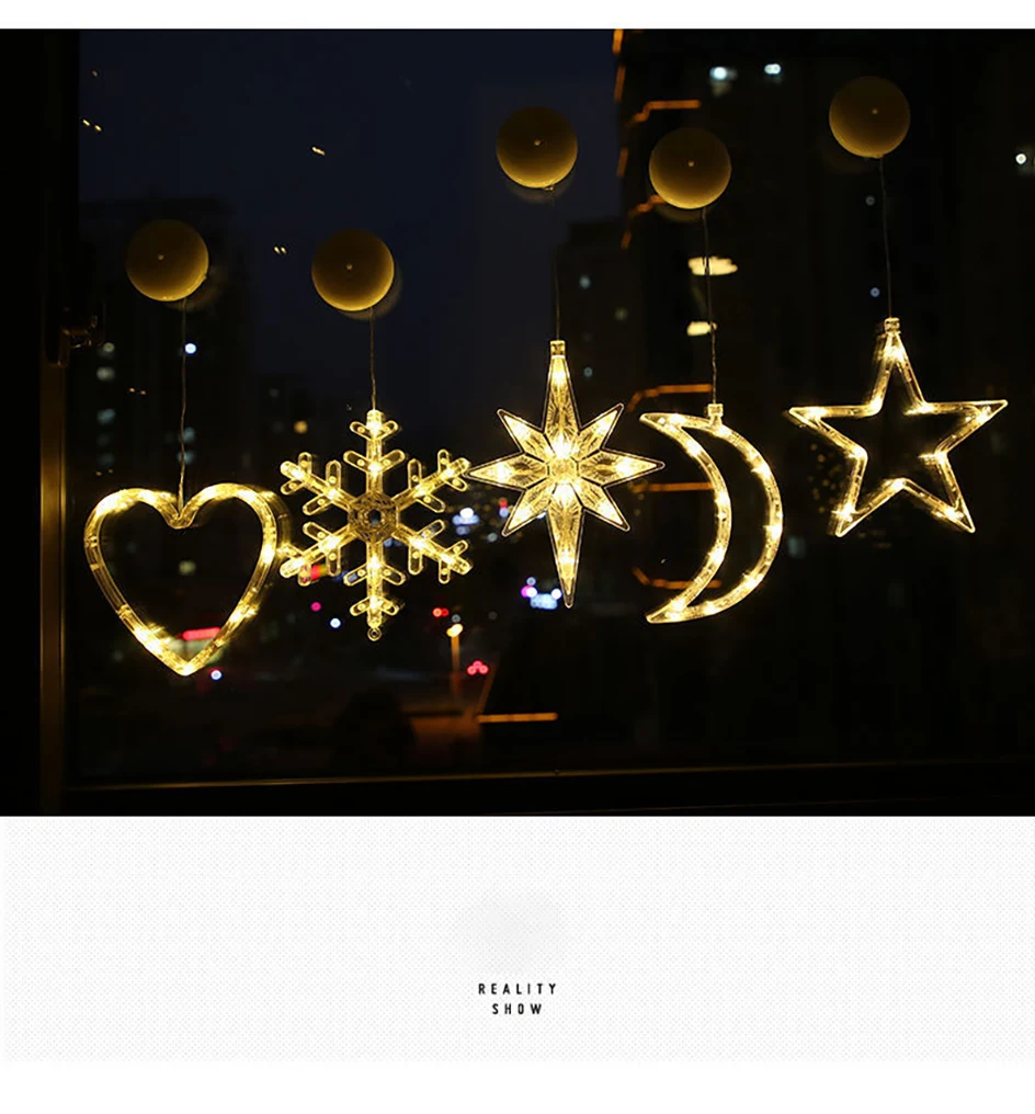 Светодиодсветильник Подвесная лампа на присоске, Рождественская декоративная Подвесная лампа, Санта-Клаус, лось, снежинка, форма рождественской елки Декор домашнего окна, Рождество 2022
