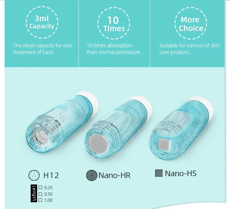 Размеры: 0,25/0,5/1,00 мм, длина иглы может быть выбраны в зависимости от толщины кожи и лечение тяжести; Может улучшить кожу тон, устраняют пигментацию, сужает поры, предотвращает выпадение волос (облысения), эффективное лечение морщин, шрамов, акне и растяжек.