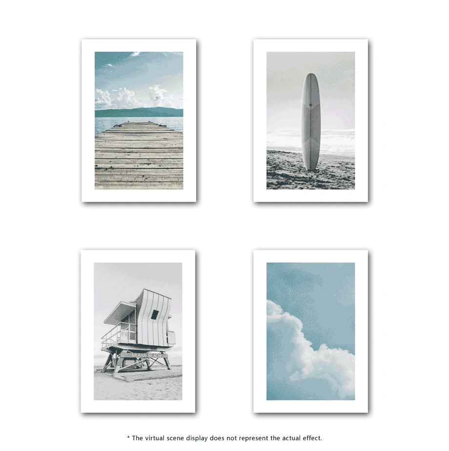 Доска для серфинга, пляж, дом, небо, морской мост, настенный художественный принт, бумага, холст, живопись, скандинавский постер, домашний декор, картины для гостиной