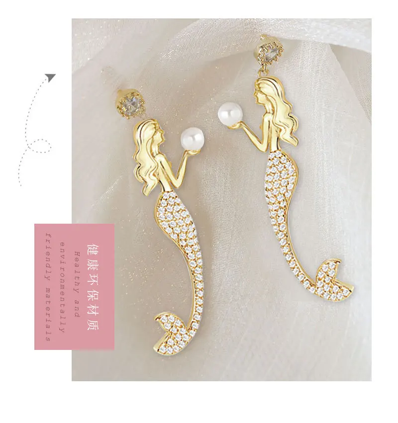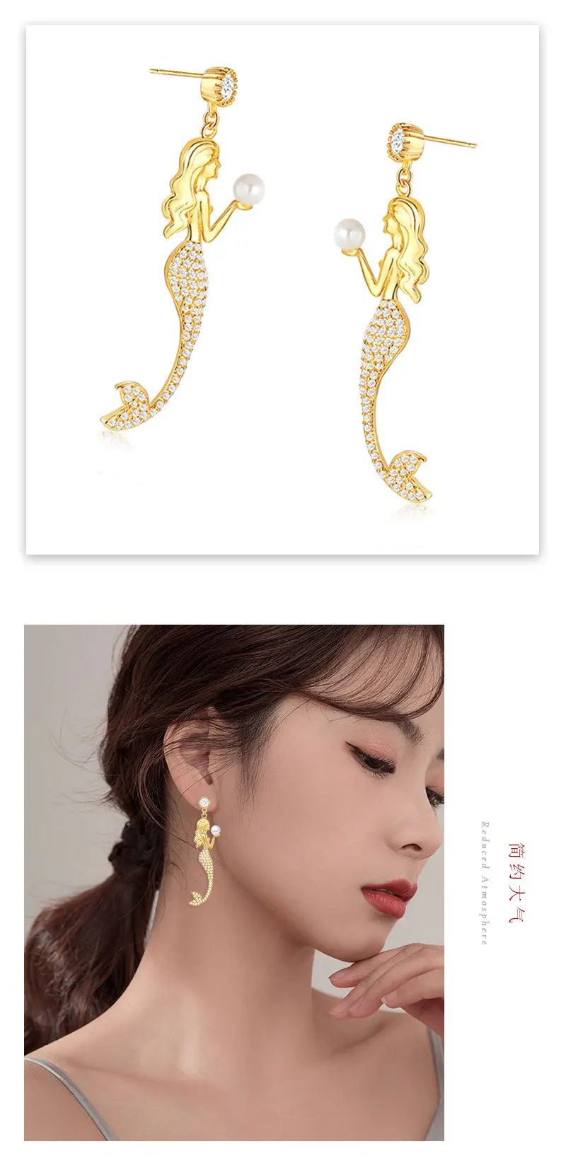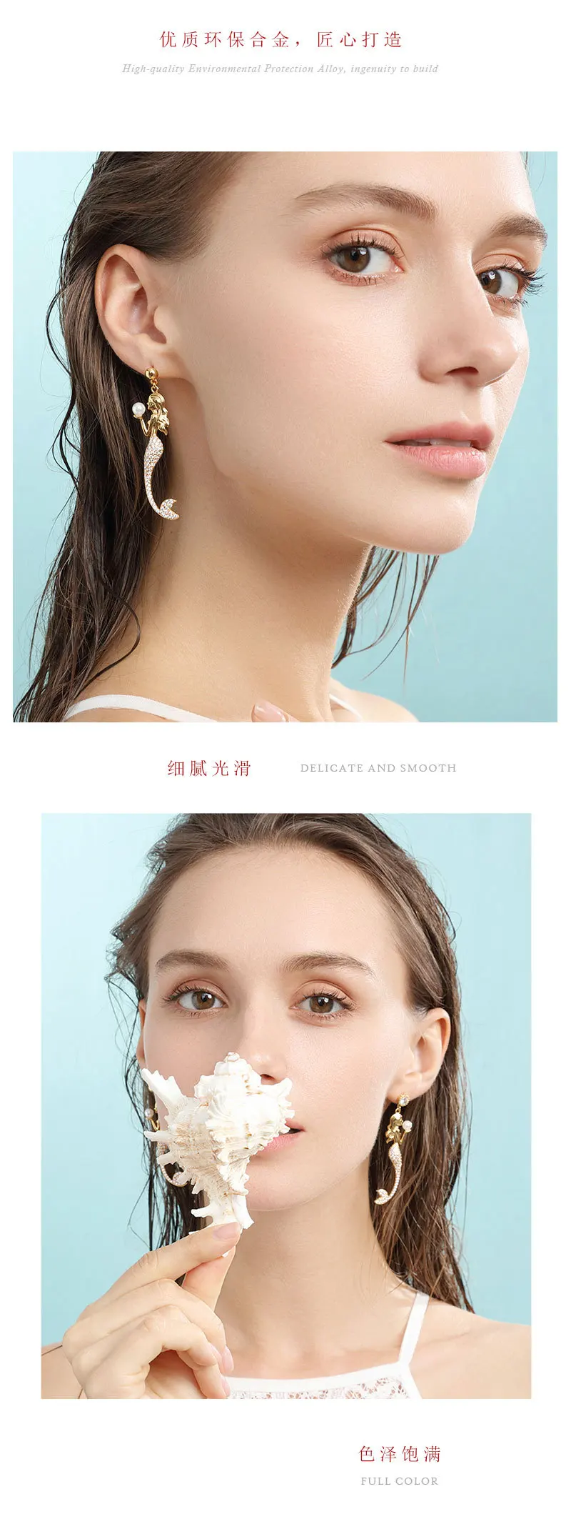 Серьги-русалки женские, изысканные характерные ювелирные украшения для ушей для вечеринок и банкетов