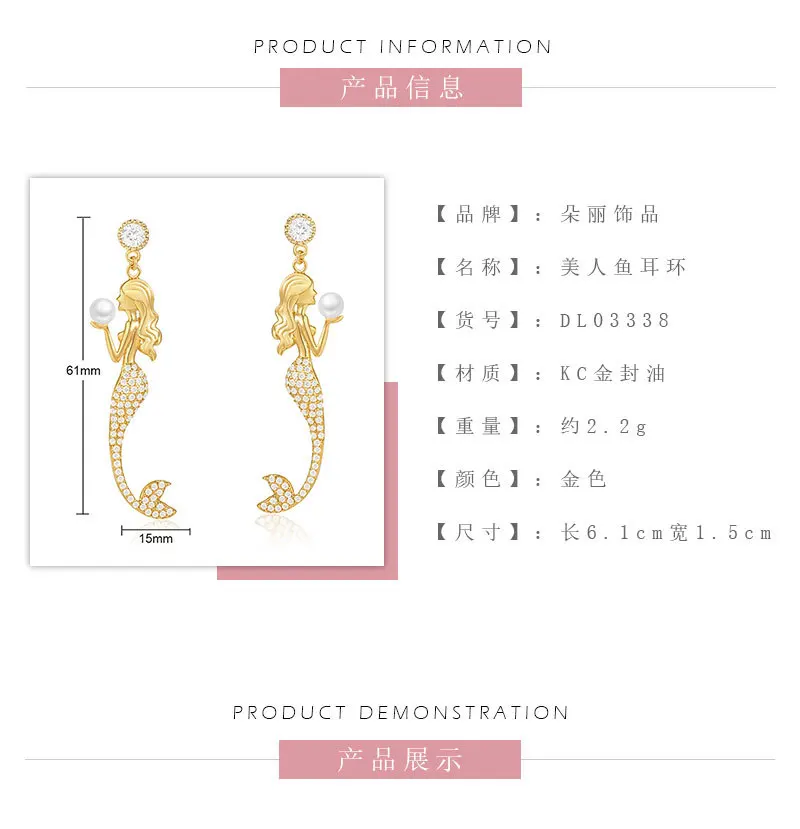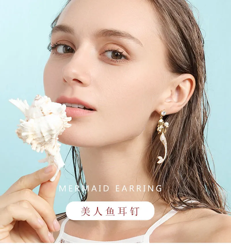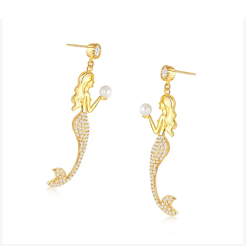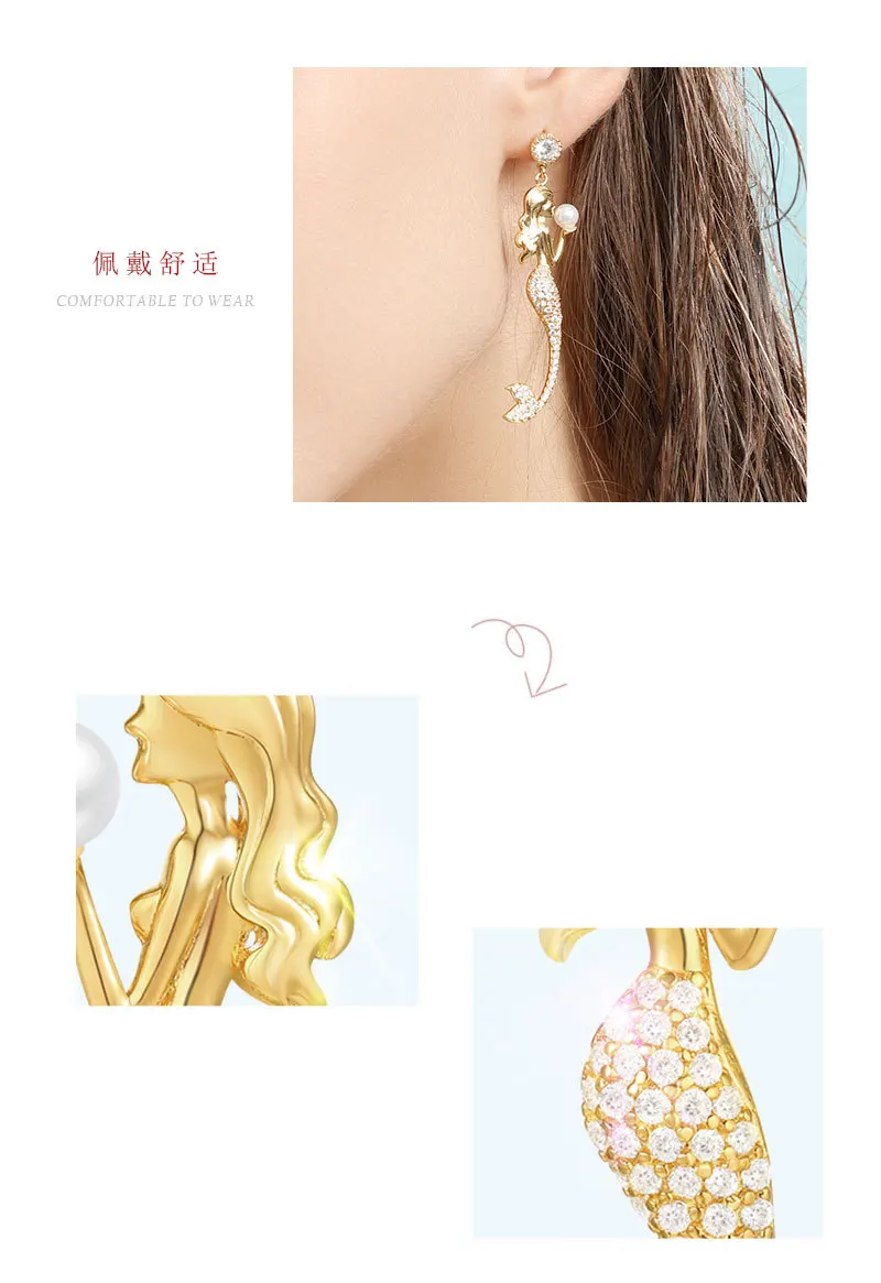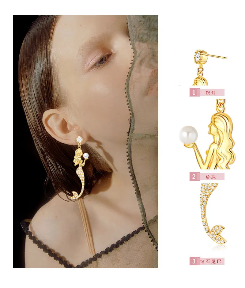 Серьги-русалки женские, изысканные характерные ювелирные украшения для ушей для вечеринок и банкетов
