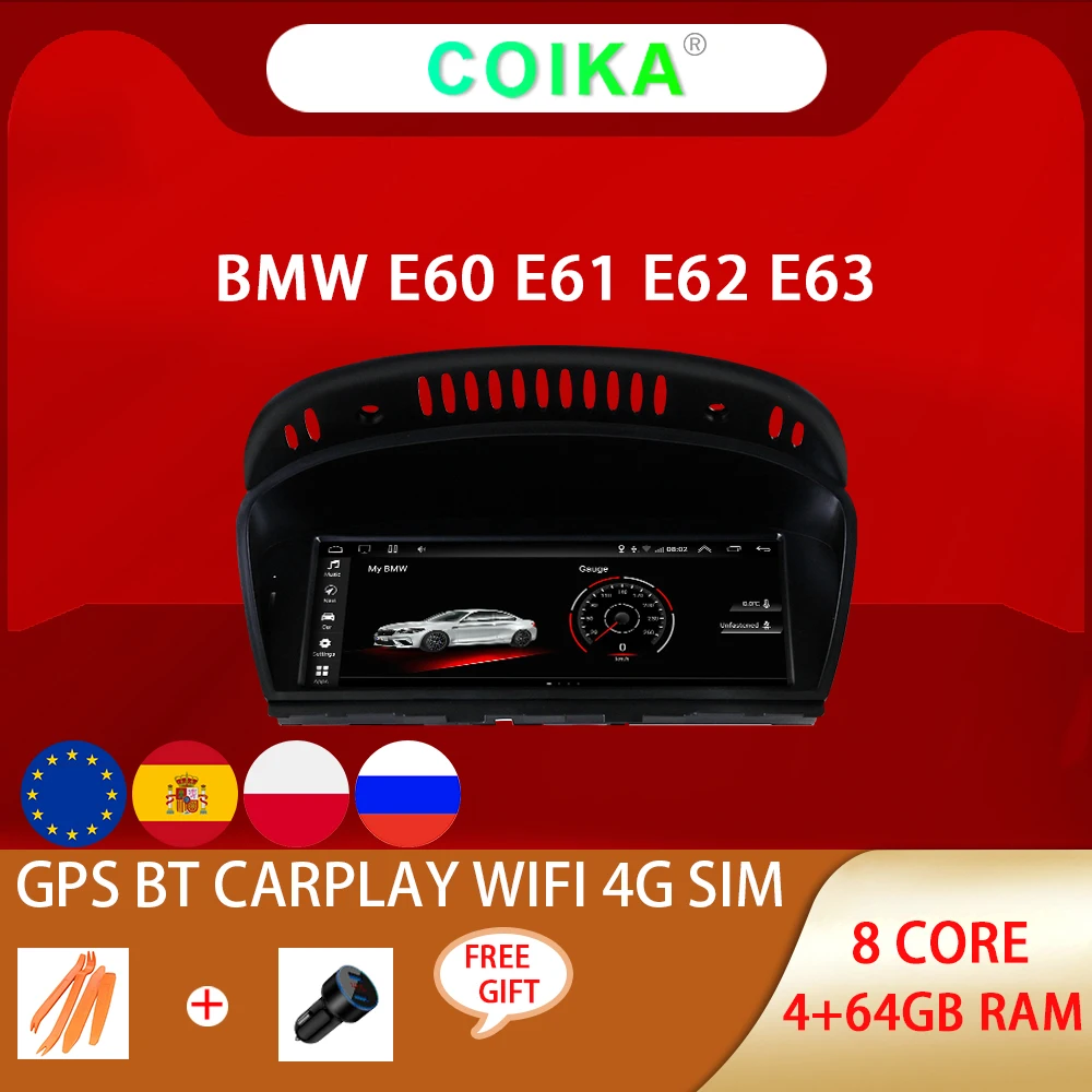 Система Android 10 Автомобильный GPS навигатор Экран для BMW E60 E61 E62 E63 E90 E91 E92 E93 WIFI 4 + 64 ГБ BT IPS сенсорный стерео беспроводной Carplay