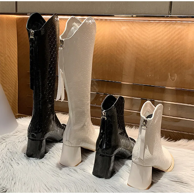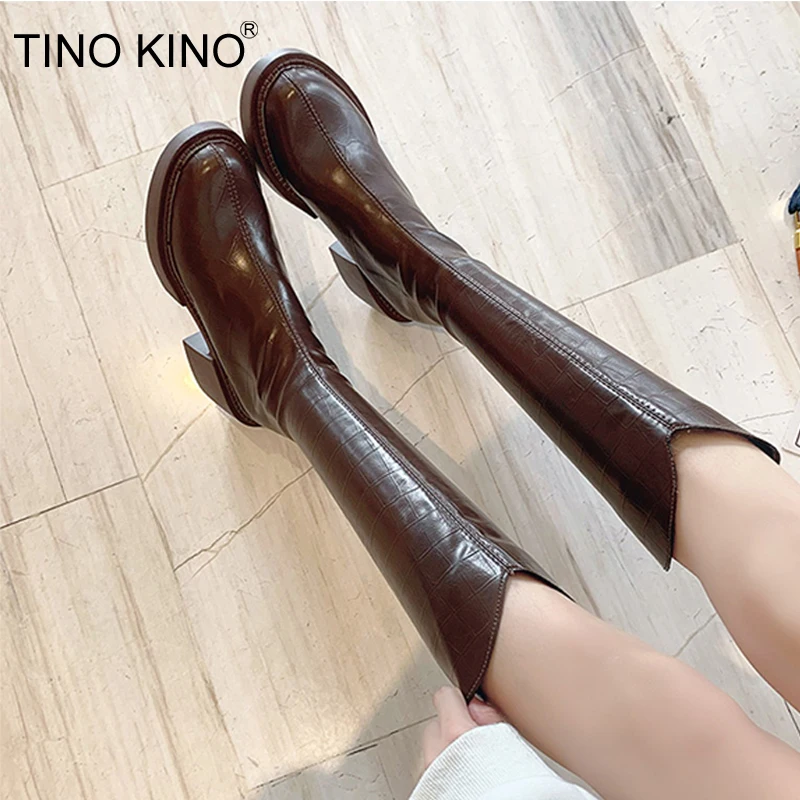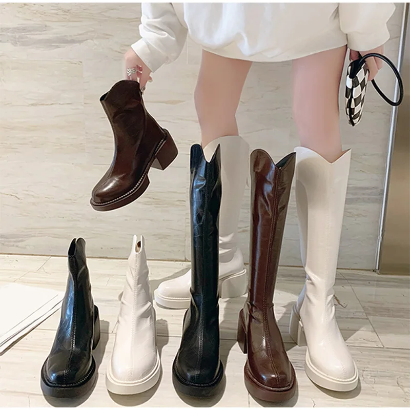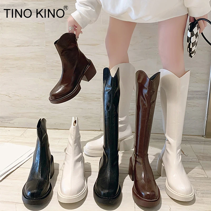 Женские ботильоны на массивном каблуке, осенне-зимние высокие сапоги до колена из натуральной кожи, модные высокие сапоги на платформе с молнией