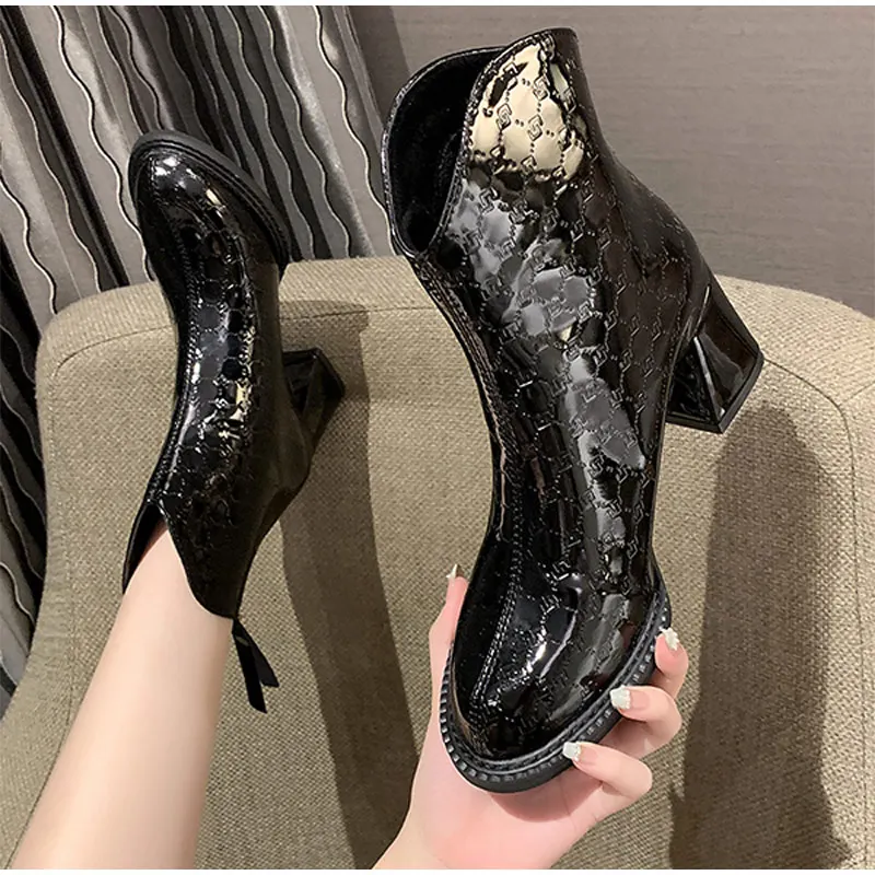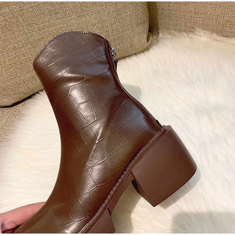 Женские ботильоны из натуральной кожи на массивном каблуке; Сезон осень-зима; Женские высокие сапоги до колена; Модные высокие сапоги на платформе с молнией