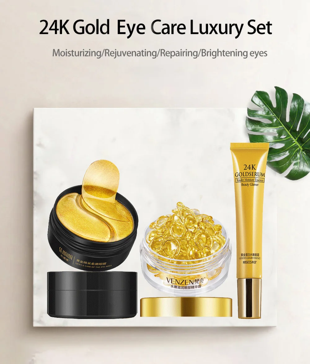 Уход за кожей морские водоросли 24K Золотая увлажняющая маска для глаз антивозрастная эссенция для глаз укрепляющий коллагеновый крем для глаз набор для ухода за глазами 3 шт