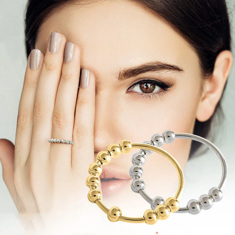 Женский Спиннер, кольца-антистресс для беспокойства, кольца из нержавеющей стали для снятия стресса, Размеры S M L