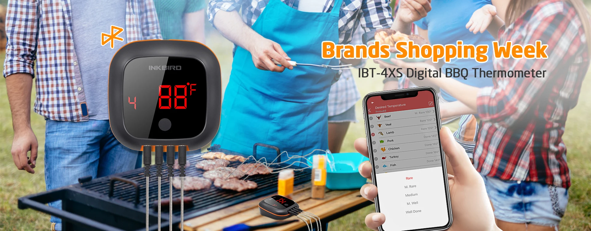 Inkbird IBT-2X IBT-4XS IBT-4XC IBT-6XS IBBQ-4T цифровые термометры для приготовления барбекю с светодиодный/ЖК-экраном и зондами из нержавеющей стали и температурной сигнализацией смарт-телефон бесплатное управление приложением Поддержка Android и IOS