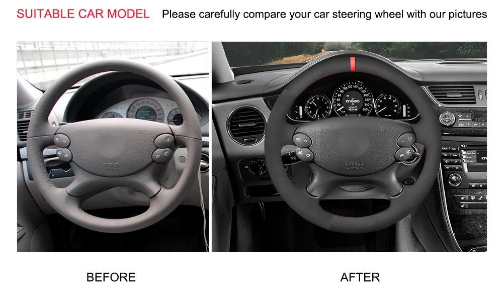 Сшитый вручную черный замшевый чехол на руль для Mercedes Benz E-Class W211 CLK-Class C209 A209 C219 W463 SL-Class R230