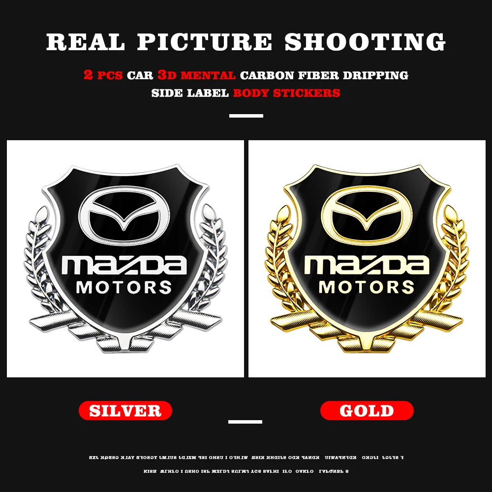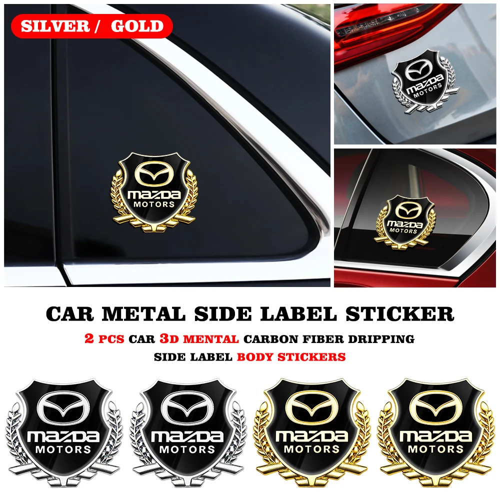2 шт. автомобильные наклейки 3D, металлическая дверь, боковой багажник, водонепроницаемые наклейки с логотипом автомобиля для Mazda 3 Axela Speed 6 Atenza MX5 323 CX5 CX30 RX7 626