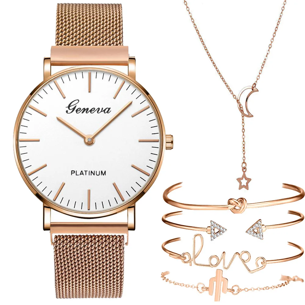 Часы женские кварцевые из нержавеющей стали под розовое золото с ма...