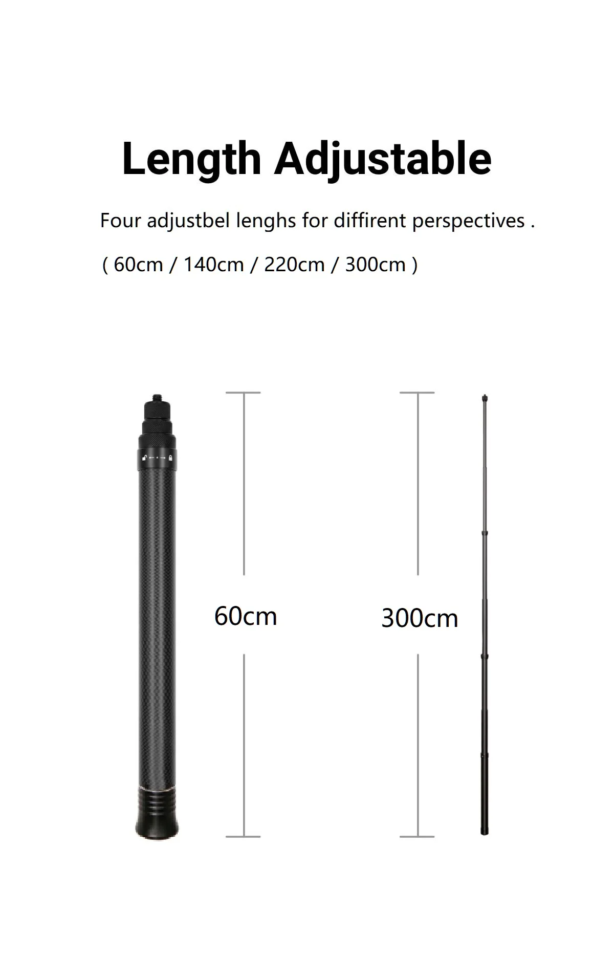 3 м/1,5 м углеродного волокна Невидимый селфи палка для Insta360 один X2/один RS /R /ONE X