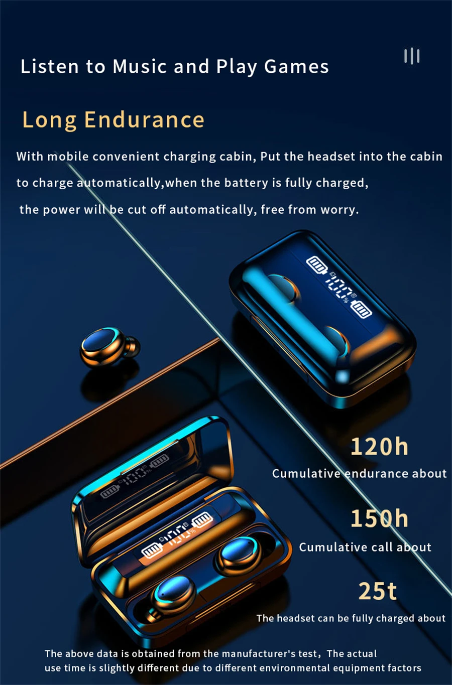Рекомендуется для владельца магазинаBluetooth-гарнитура нового поколения F9Он может быть использован для любого мобильного телефона, который поддерживает функцию Bluetooth, независимо от бренда и режима.Экстрим издание мощное обновление мат:1. Обновленный светодиодный дисплей питания: интуитивно понятный, чтобы узнать уровень заряда кабины и гарнитуры с первого взгляда2. F9-8 обновление чипа: Обновите чип 5,0 Bluetoothchip, возьмите автоматический ботинок и соответствие3. Обновление оперативной функции: один сенсорный переключатель Предыдущая/следующая песня и регулятор громкости помощник4. Кабинка для зарядки большой емкости: Может использоваться для хранения наушников для зарядки наушников/мобильный телефон в качестве держателя на мобильный телефон5.Enjoy & 9D heavy bass: Наслаждайтесь HIFI sceneand enioy иммерсивным 9D стереозвуком6. Интеллектуальное снижение шума CVC80: Наслаждайтесь эффектами вызова HD, не подвергая воздействию шумных окружающей среды7. Сильная Совместимость: независимо от бренда мобильного телефона и модели, устройства Bluetooth-enableddevices могут использоватьЭта гарнитура