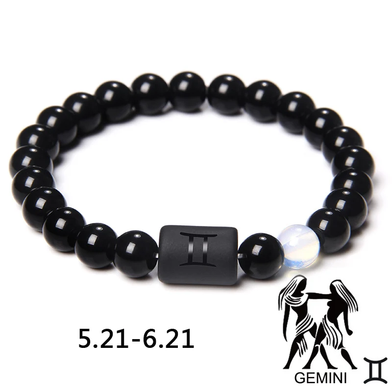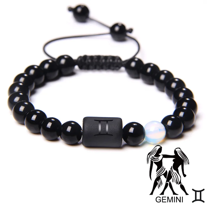 Gemini очаровательный браслет Пара натуральных драгоценных камней черные бусины 12 созвездий дружба Зодиак мужской женский подарок пожелания браслеты