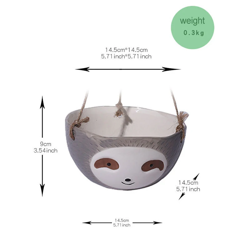 Симпатичный Керамический плантатор в форме ленивого, подвесной держатель для растений, суккулентов, маленьких растений