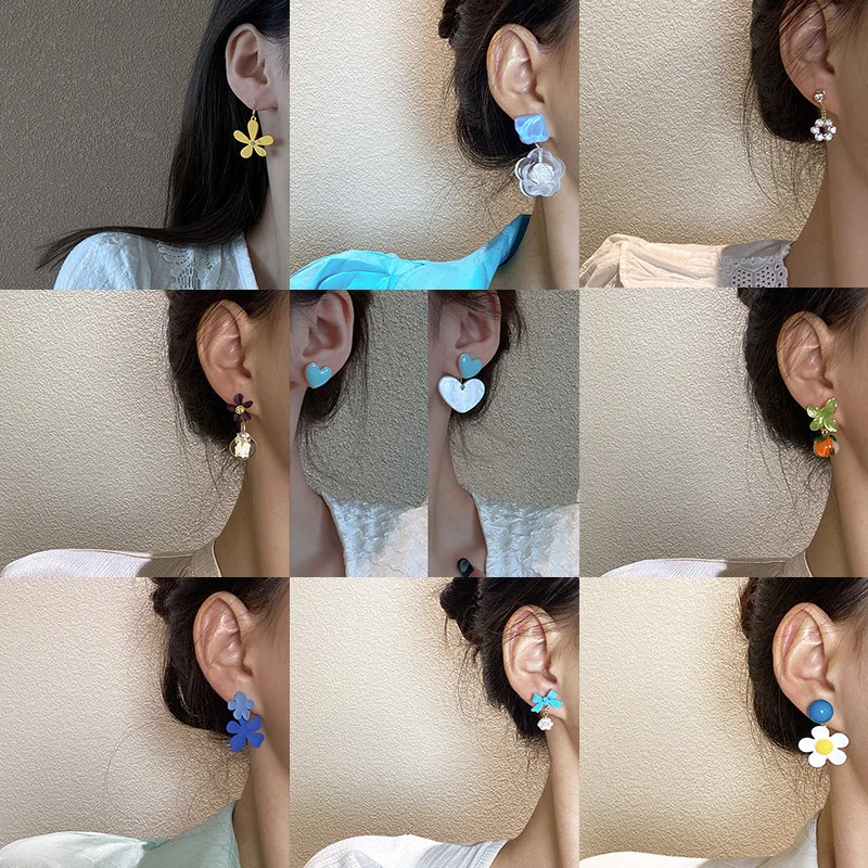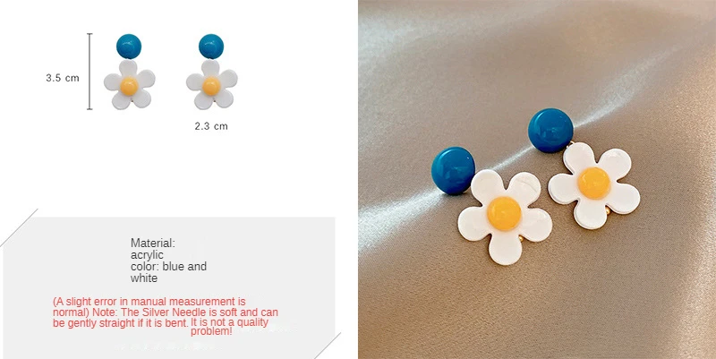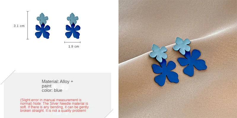 Корейские модные ювелирные изделия, серьги-гвоздики в виде синего ц...