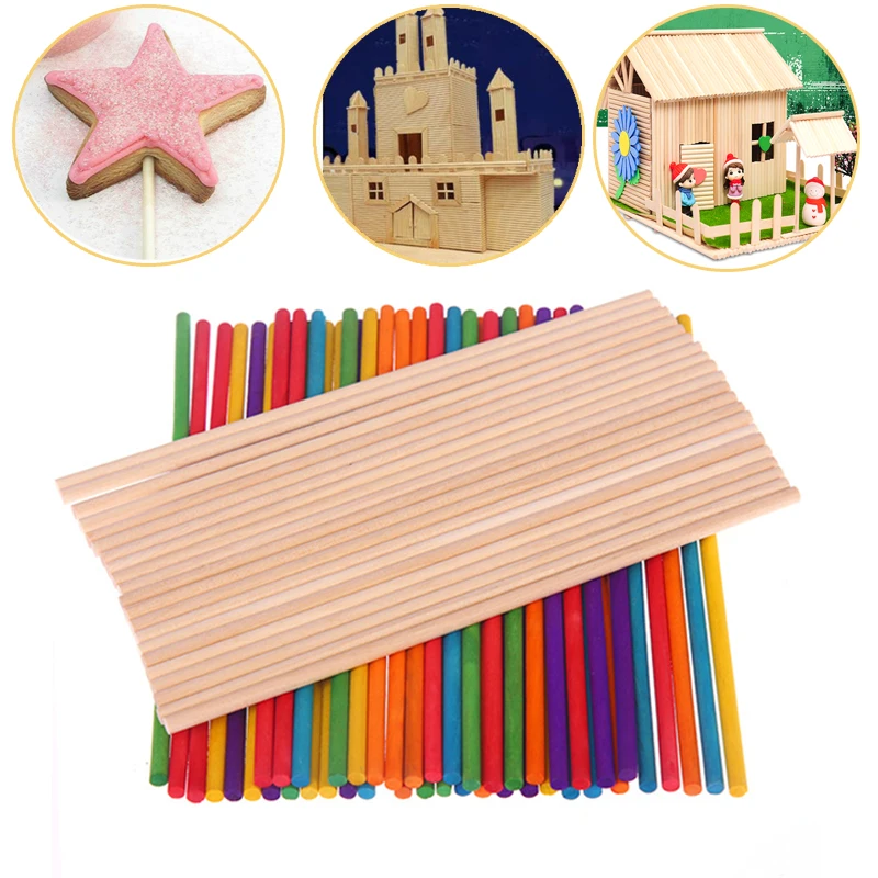10 шт. 3-6mm-Round-Wooden-Lollipop-Lolly-Sticks-Cake-Dowels-DIY-Foo...
