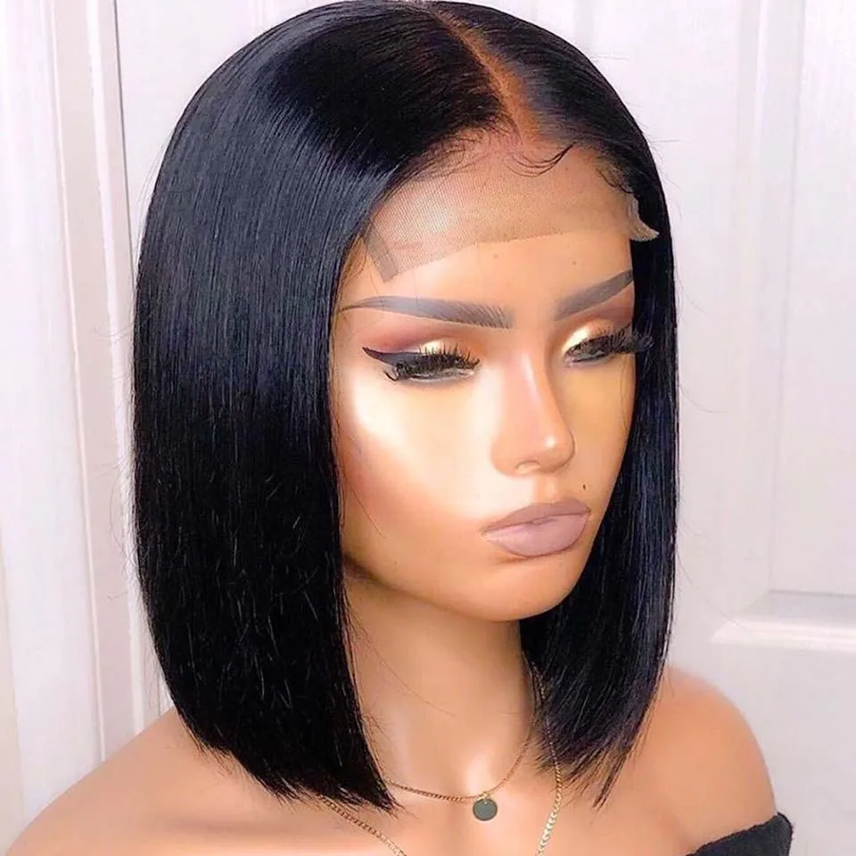 Парик Короткий Боб, прямые парики из человеческих волос 13x1 T, пар...
