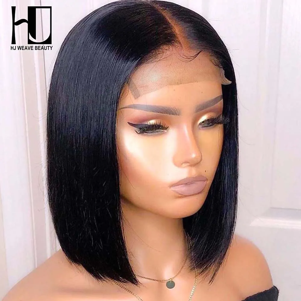 Короткий парик Боб, парик из человеческих волос HD на сетке спереди...