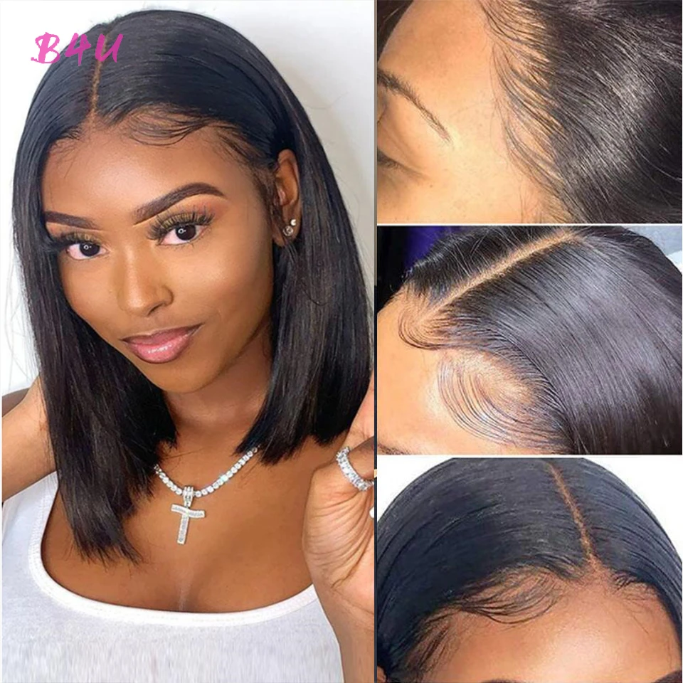 Короткий парик Боб, прямые человеческие волосы, парики для черных женщин, предварительно выщипанные волосы, парик, бразильские волосы, кружевные парики
