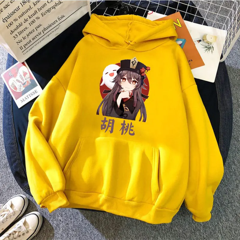 Толстовки с принтом Game Genshin Impact Hutao Kawaii мужские женские модные пуловеры с капюшоном Толстовка Harajuku унисекс Толстовка Оверсайз