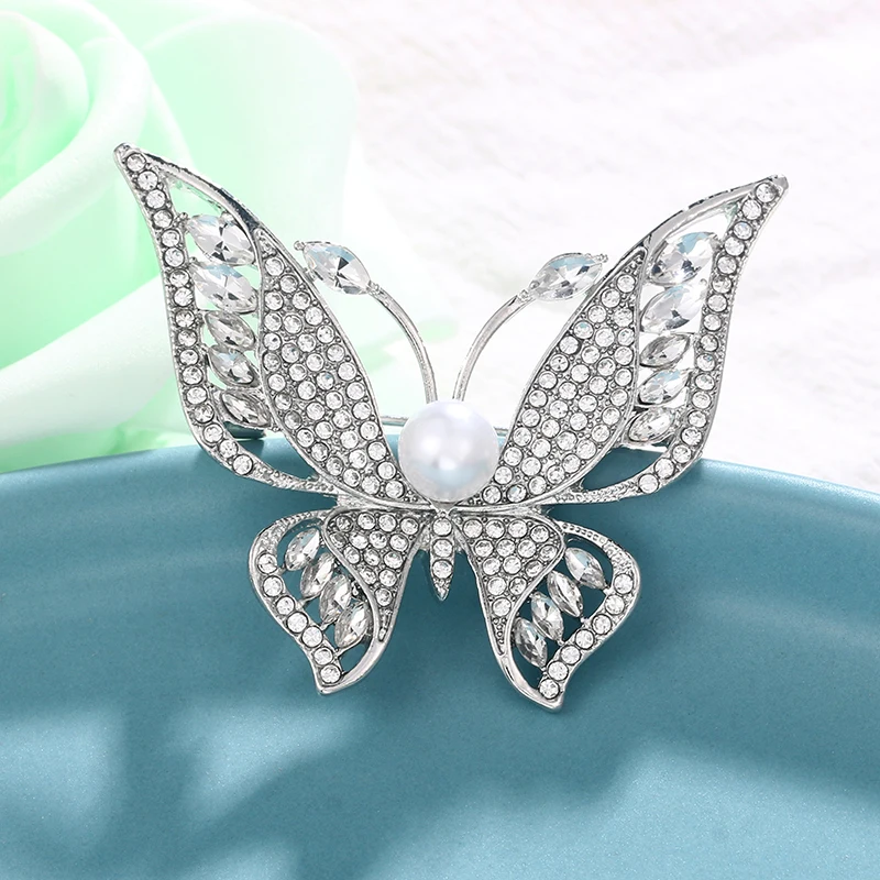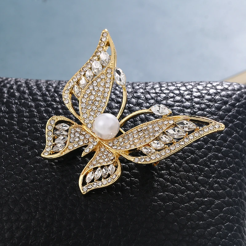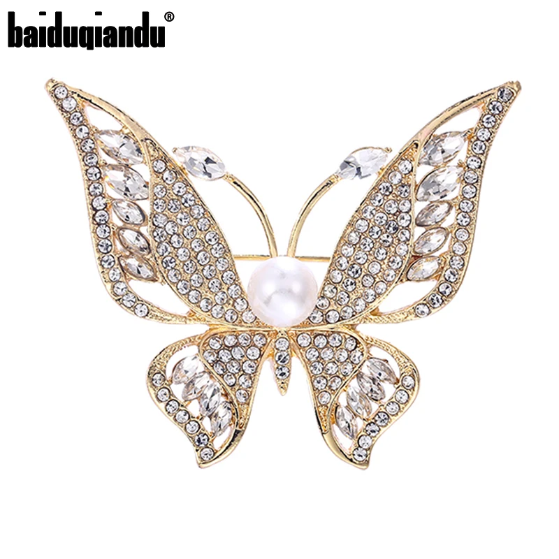 Женская Брошь-бабочка Baiduqiandu, золотистаяСеребристая брошь с искусственным жемчугом