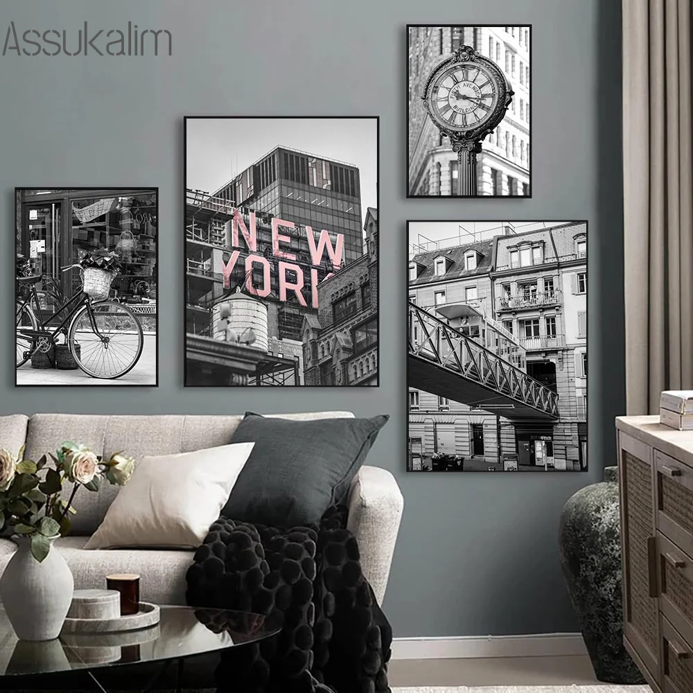 Настенные постеры с изображением розового городского пейзажа, насте...