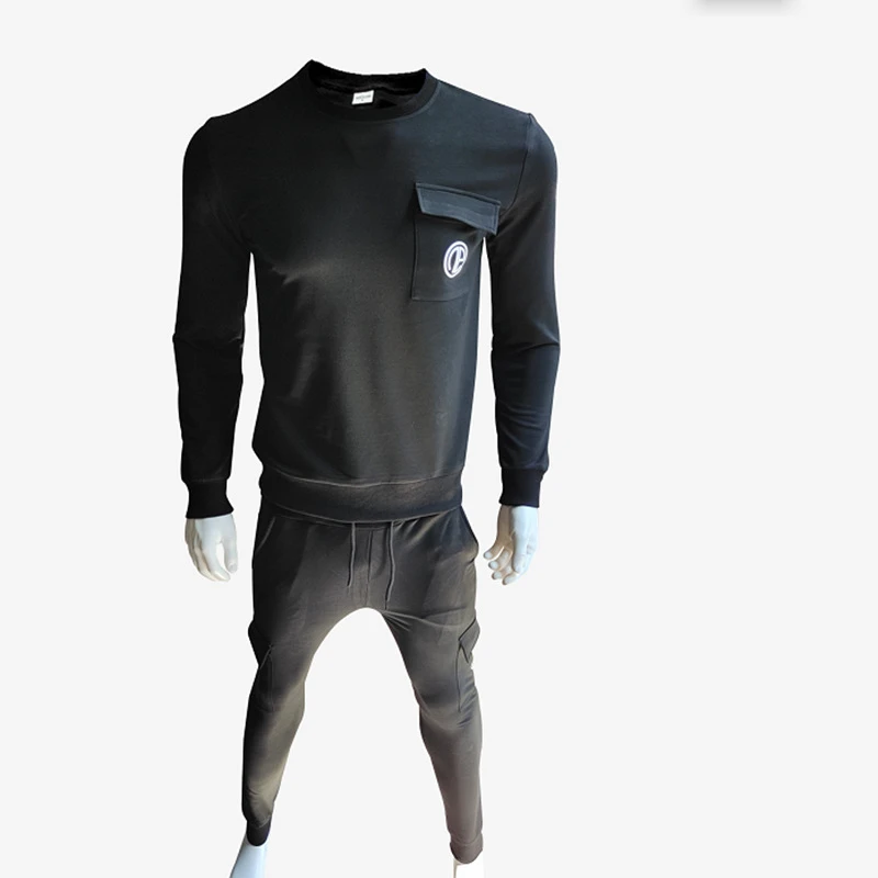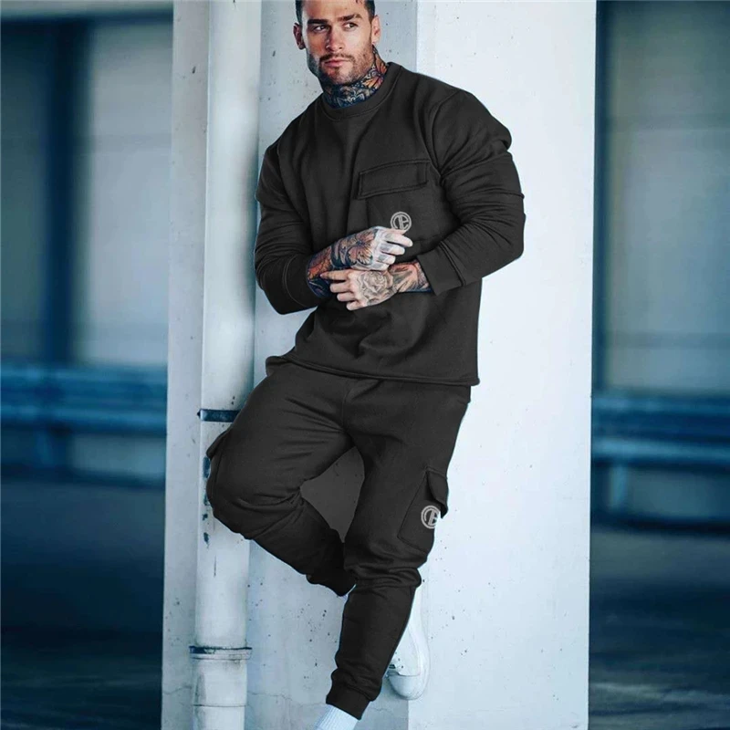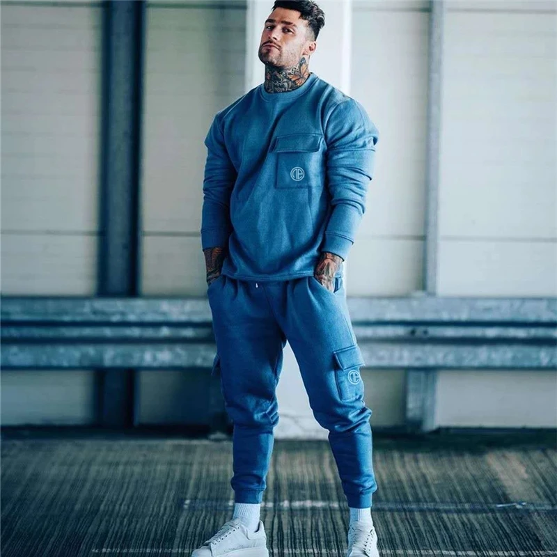 Мужской спортивный костюм для фитнеса, рабочая одежда, мужской костюм на осень и зиму, рубашка с длинным рукавом + брюки, спортивный костюм для тренажерного зала и бега, хлопок