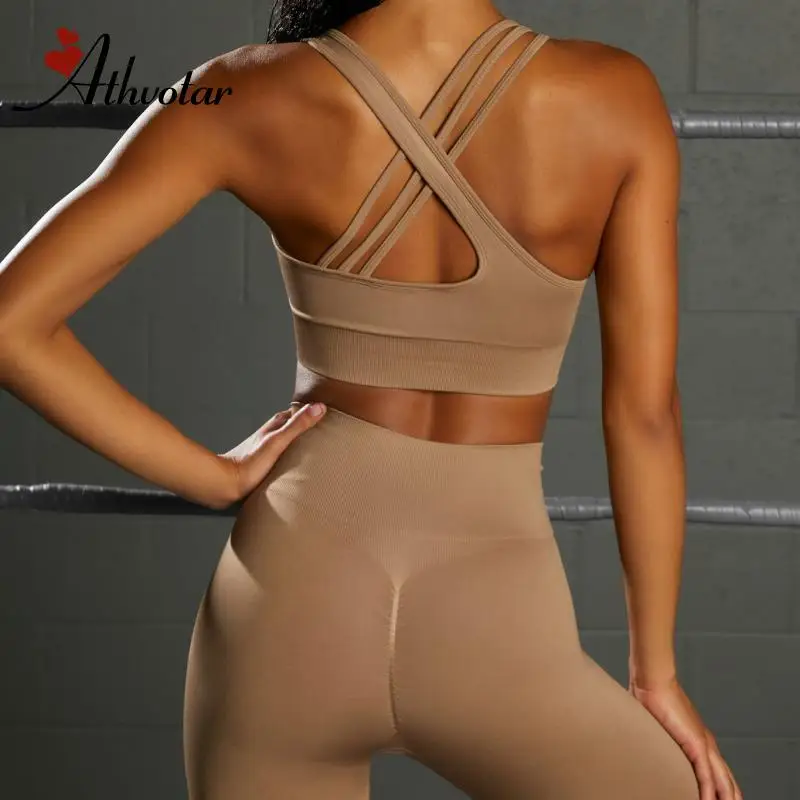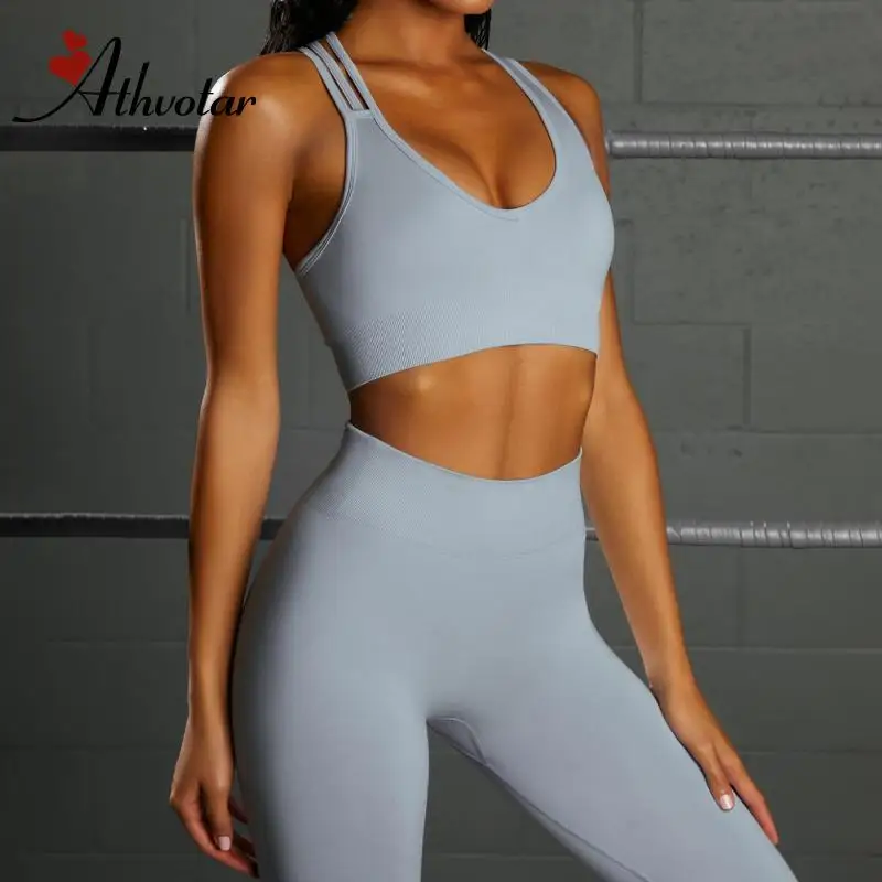 Новинка 2021, костюмы для йоги ATHVOTAR, спортивный бюстгальтер с ремешками, штаны для йоги, комплект для тренировок, женский спортивный костюм с быстрой сушкой