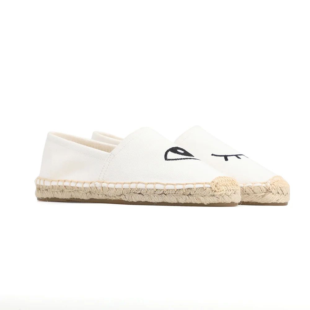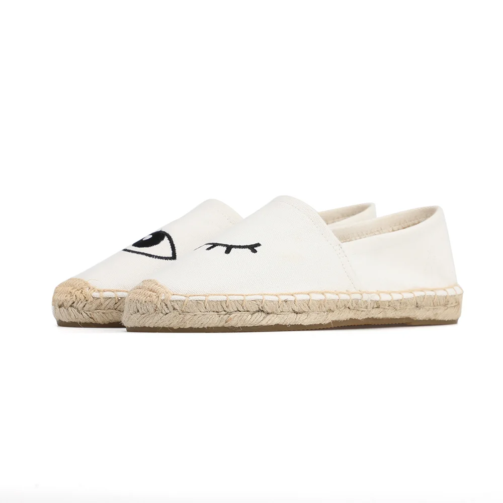 Соломенные туфли с индивидуальной вышивкой глаз, Женская Повседневная Удобная обувь на плоской подошве, эспадрильи на одной ноге