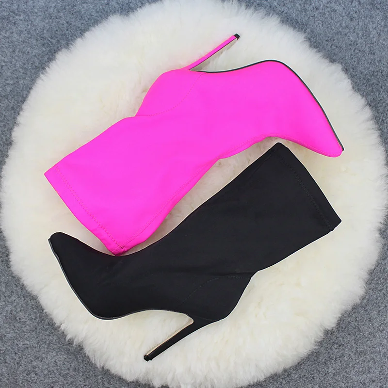 Осенние женские эластичные ботинки, модные женские ботинки карамельных цветов с острым носком на высоком каблуке, женские туфли-лодочки на тонком каблуке, женские ботильоны